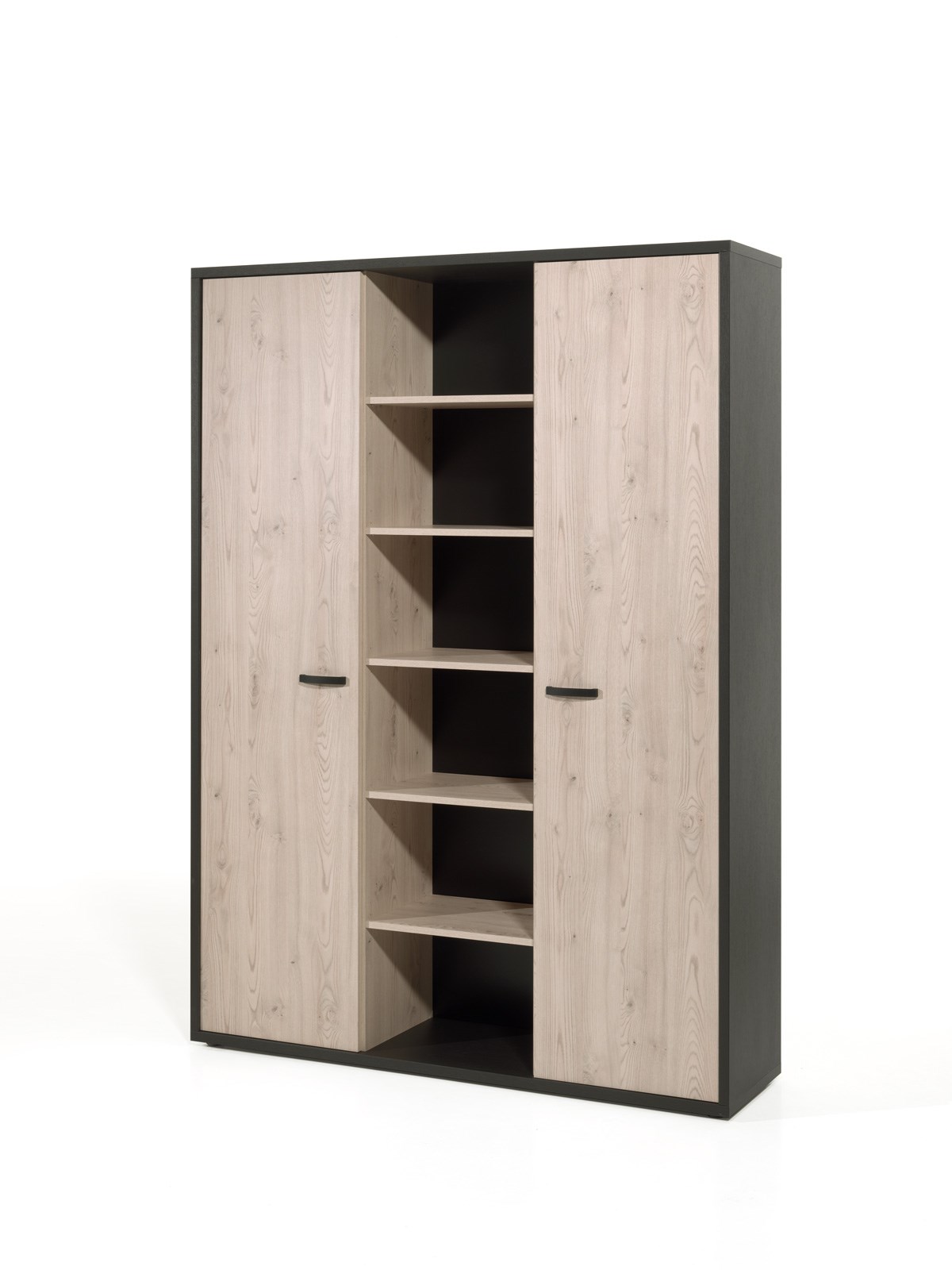 L'armoire CAPO en coloris noir et châtaigne possède 2 portes et 6 niches. Elle est très pratique pour ranger vos classeurs, papiers, enveloppes et accessoires de bureau.