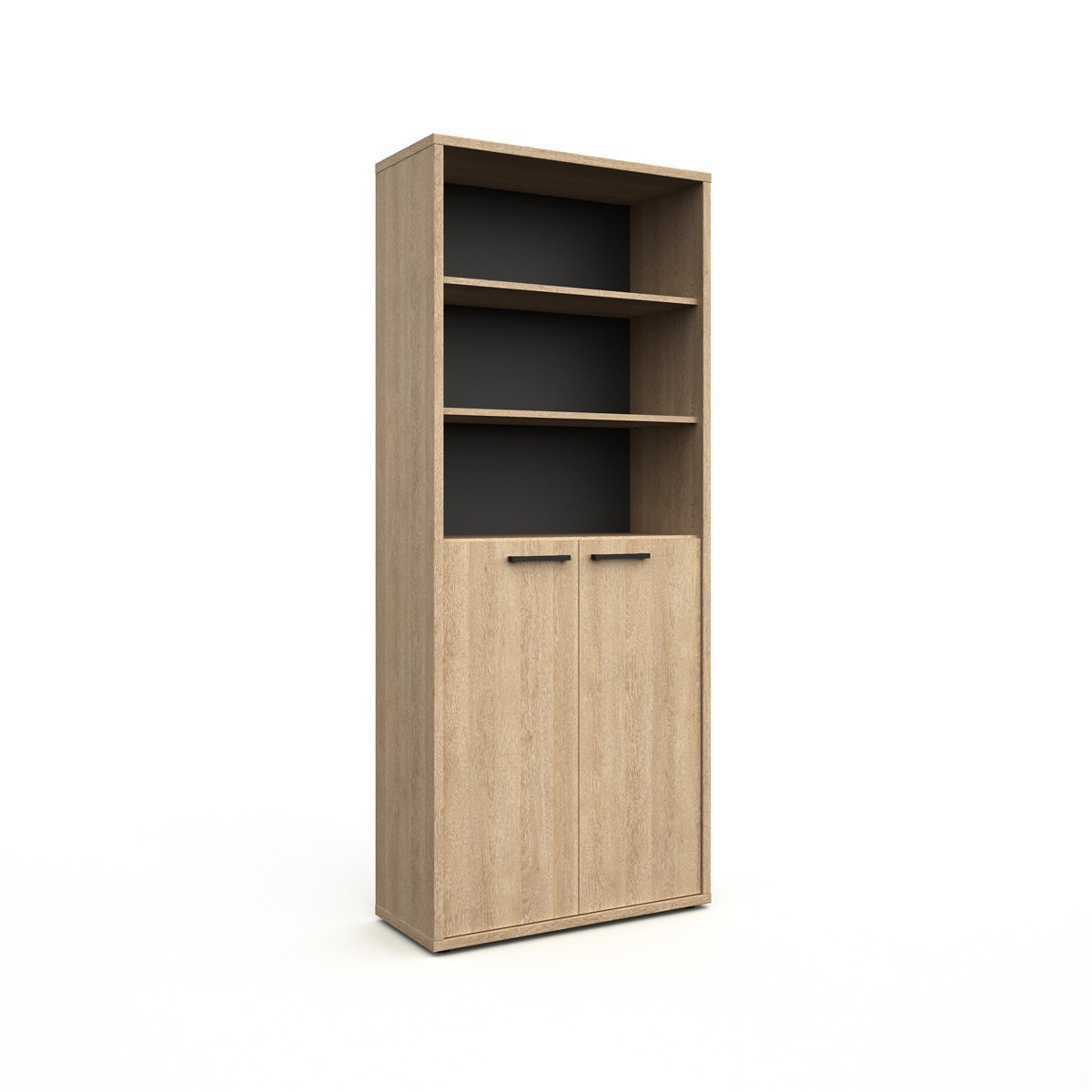 L’armoire de bureau/bibliothèque FLEXO en décor bois chêne sable combine parfaitement espaces ouverts et rangement fermé. Avec ses dimensions généreuses de 216 cm de hauteur et 90 cm de largeur, cette armoire offre un équilibre idéal entre visibilité, accessibilité et organisation discrète.