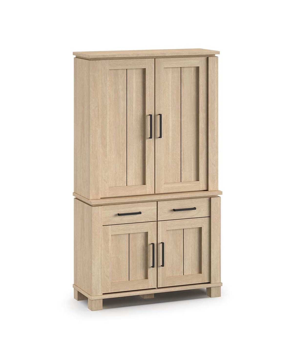Le bar ALBA séduit par son style champêtre et sa fonctionnalité. Conçu en MDF avec un placage en chêne naturel brossé sable, il apporte chaleur et authenticité à votre intérieur. Doté de 4 portes et 2 tiroirs, il offre de multiples espaces de rangement pour bouteilles, verres et accessoires. Les poignées en métal noir ajoutent une touche de contraste moderne et élégante. Idéal pour créer un coin bar convivial dans votre salon ou salle à manger, ce meuble allie charme rustique et praticité avec des finitions soignées.