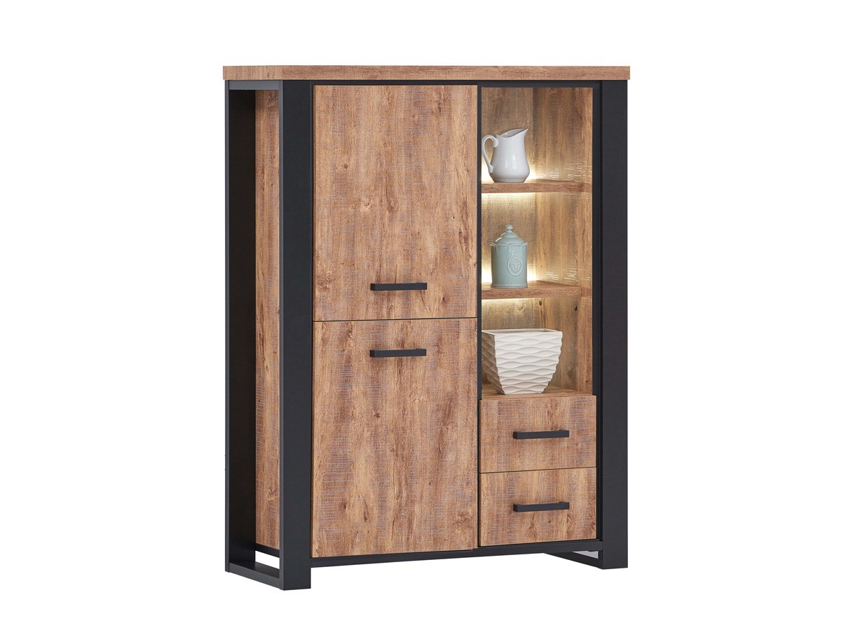 Magnifique bar avec éclairage de la collection ESTRELLA. En décor chêne industriel et côtés noirs, cette collection possède tous les atouts que vous recherchez : pratique, tendance, et à un prix très attractif !