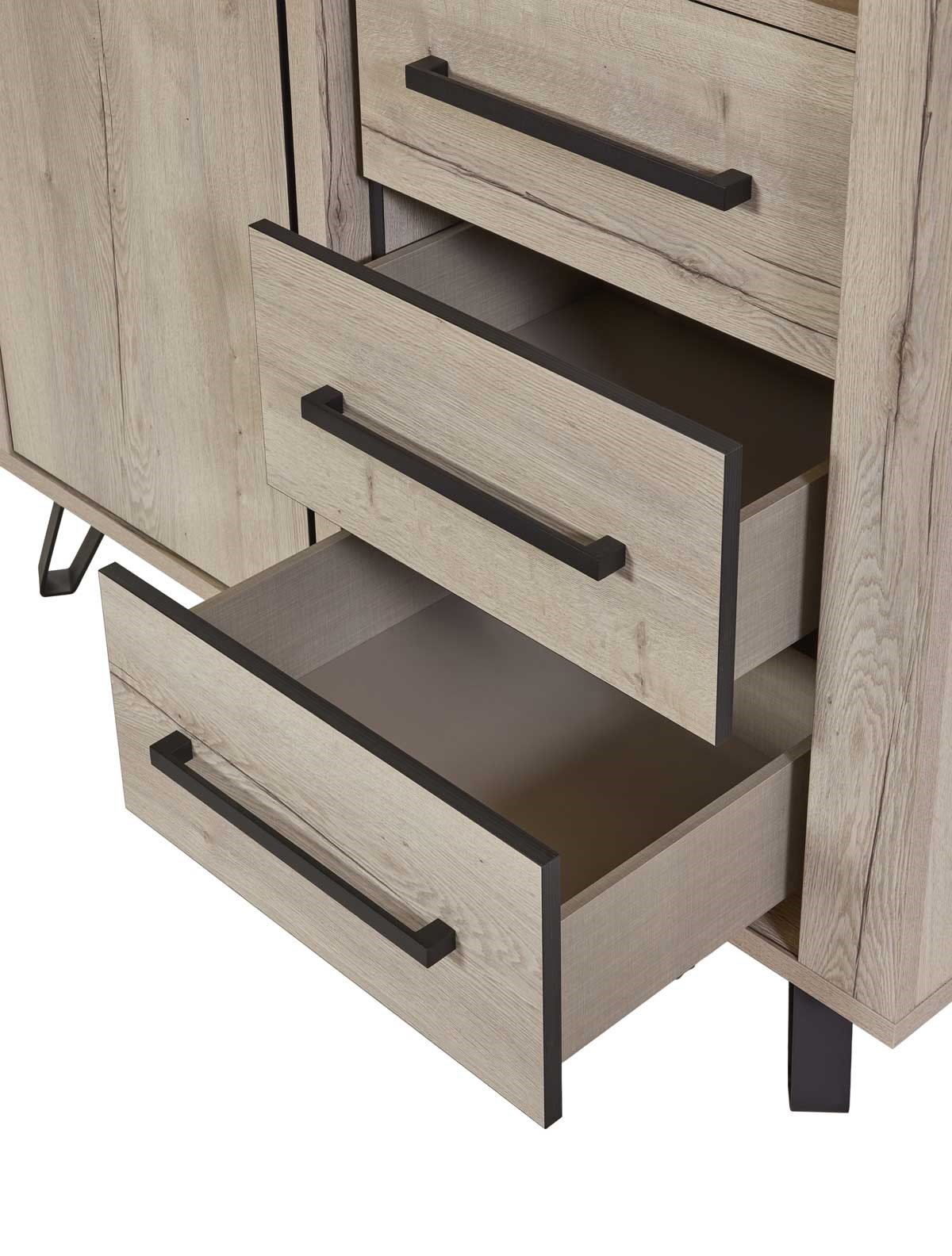 La mélamine Halifax White de haute qualité apporte une apparence chaleureuse et naturelle, avec un veinage subtil qui se marie parfaitement aux intérieurs contemporains, industriels ou scandinaves. Résistante aux rayures et facile d’entretien, elle garantit un meuble durable et esthétique au quotidien.