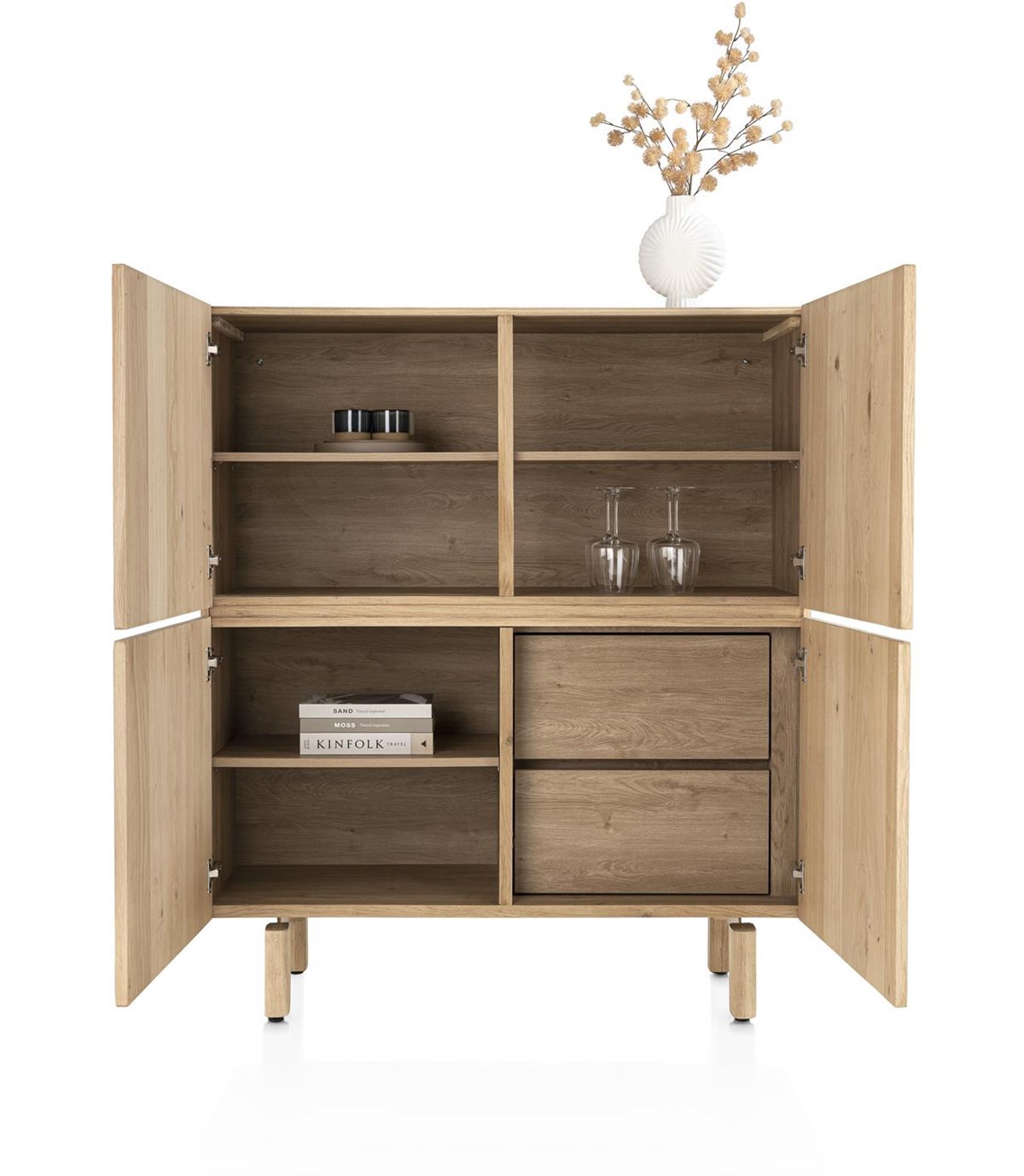 Le style scandinave est plus tendance que jamais et s’exprime à merveille dans la collection AZULO de Henders & Hazel. Réalisée en placage de chêne naturel avec une fine couche de laque claire, ce meuble bar 6 portes reflète simplicité, sérénité et design intemporel. Les lignes épurées sans poignées ni moulures et les portes biseautées avec système soft-closing offrent une finition élégante.