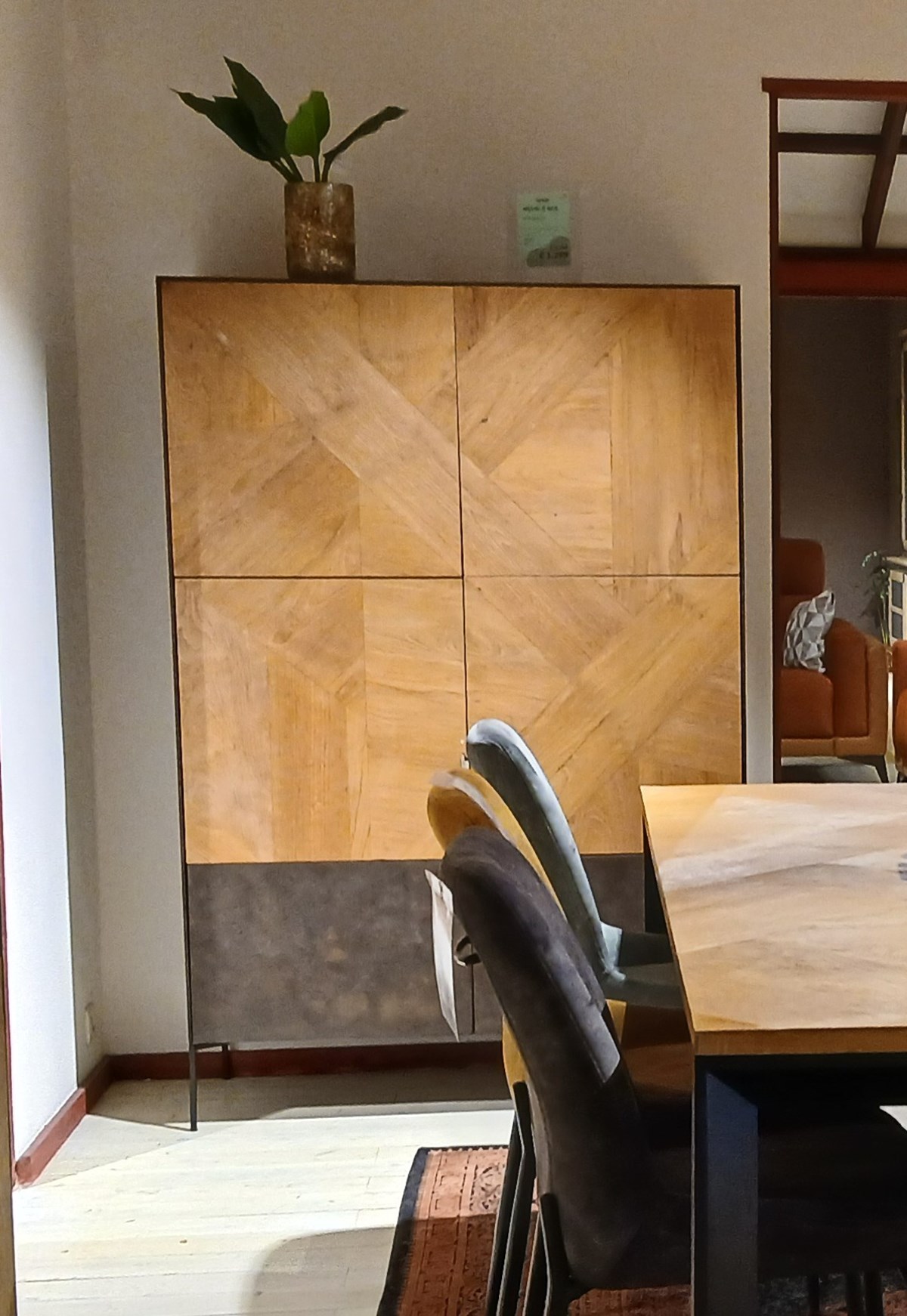 MEUBLE BAR 4 PORTES - 2 TIROIRS EXECUTION: RECLAIMED TEAK; L x H x P (en cm): 112 x 171 x 45