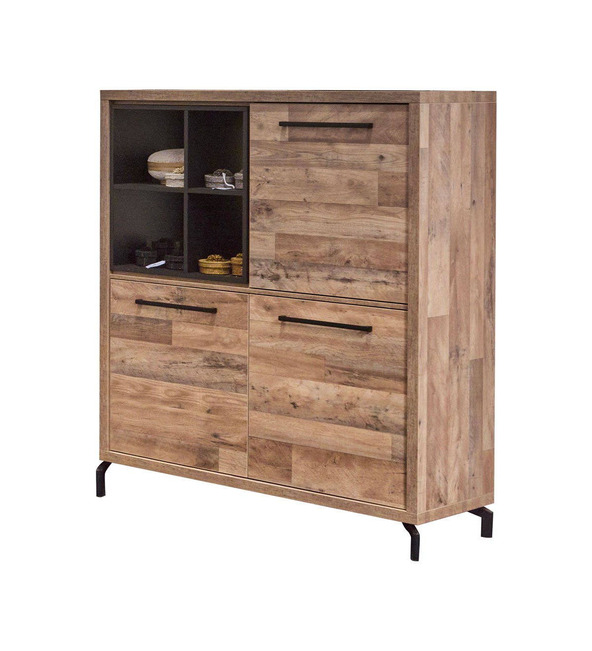 Qui n'aime pas ce beau bar 226cm de la salle à manger KUTA ?! Chaque meuble de cette collection est réalisé en mélamine imitation bois d'une haute qualité, combiné avec noir mat pour une touche industrielle. La collection KUTA est proposée en 2 coloris chaleureux.