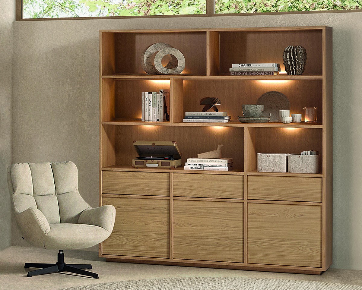 À la recherche d’une bibliothèque alliant fonctionnalité et élégance ? La bibliothèque TOKIO, avec ses 180 cm de largeur et 198 cm de hauteur, offre une solution de rangement complète et raffinée pour votre intérieur. Équipée de 3 portes, 3 tiroirs et 6 niches ouvertes, elle permet d’organiser livres, objets décoratifs et accessoires du quotidien avec harmonie. Conçue en lamulux durable avec une finition Blond Oak, elle apporte une ambiance chaleureuse et contemporaine à votre espace de vie. Son design moderne aux lignes épurées s’intègre parfaitement à tous les styles de décoration. Les niches ouvertes peuvent être mises en valeur grâce à un éclairage LED disponible en option, créant une atmosphère élégante et mettant en avant vos objets préférés. Polyvalente, la bibliothèque TOKIO trouve idéalement sa place dans le salon, le bureau ou la salle à manger. Pour une décoration cohérente, associez-la aux autres meubles de la collection TOKIO.