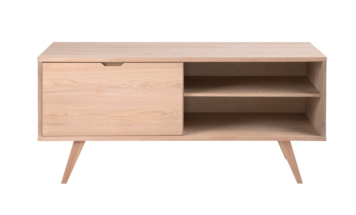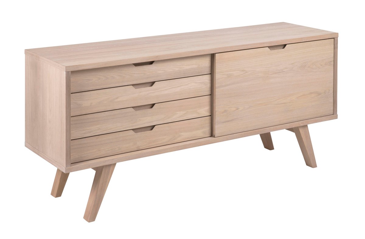 L'utilisation du chêne plaqué donne au buffet un aspect naturel et chaleureux. Les quatre tiroirs offrent un grand espace de rangement pour divers objets, ce qui rend ce meuble parfait pour organiser votre espace de vie.Grâce à sa construction solide et à ses matériaux de haute qualité, ce buffet est durable et capable de résister à un usage quotidien. La porte coulissante ajoute une touche d'élégance et permet de cacher vos affaires avec style.