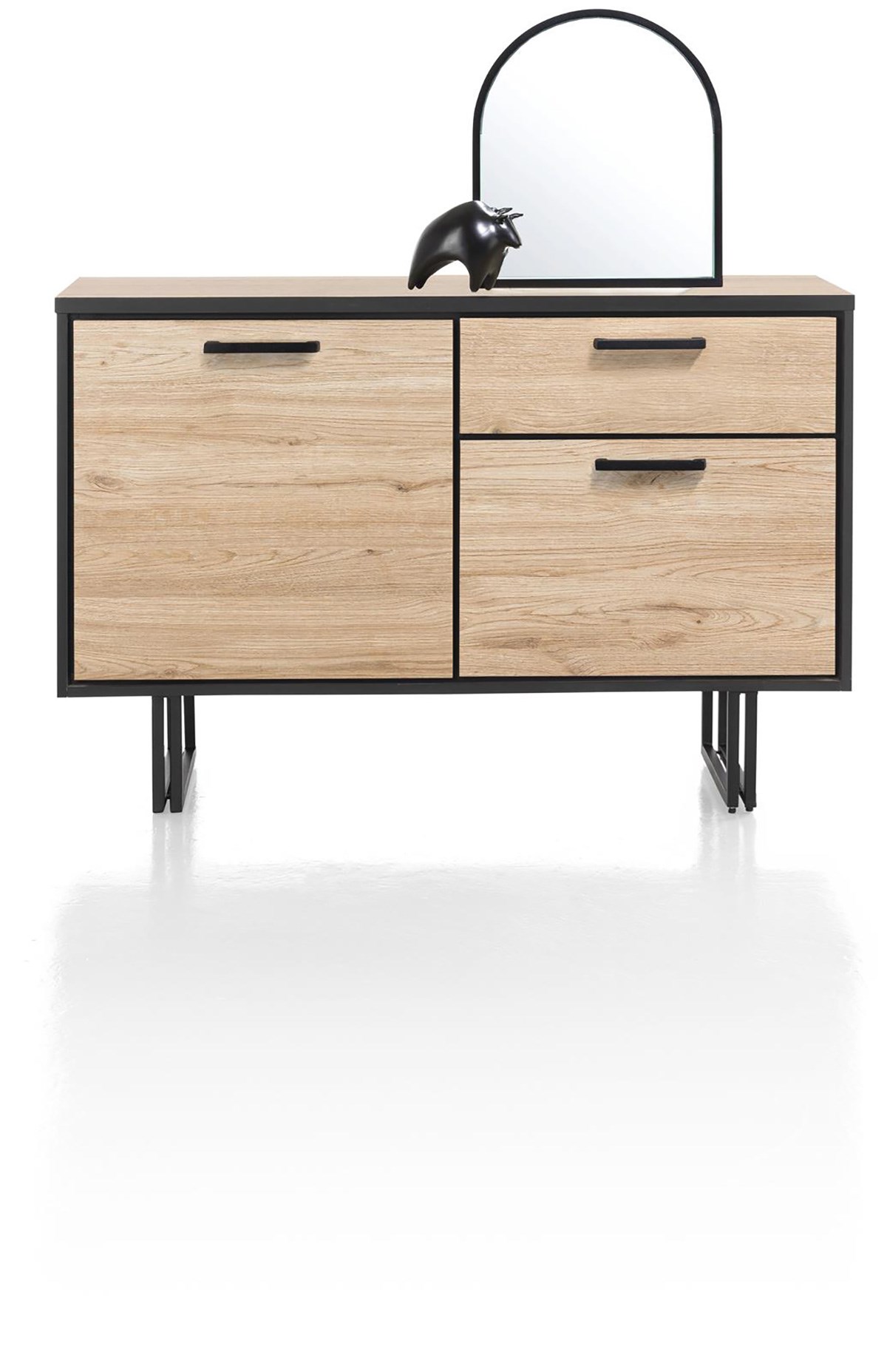Ce meuble fera sensation dans votre intérieur ! Ce buffet au style industriel fait partie de la collection AVALON. Il possède 2 portes et 1 tiroir. Son coloris est en décor bois naturel pour une ambiance moderne et chaleureuse, possible également en coloris Driftwood. Le piètement en métal apporte une touche élégante. Le buffet AVALON s'intègre aussi bien à un salon qu'à une salle à manger !