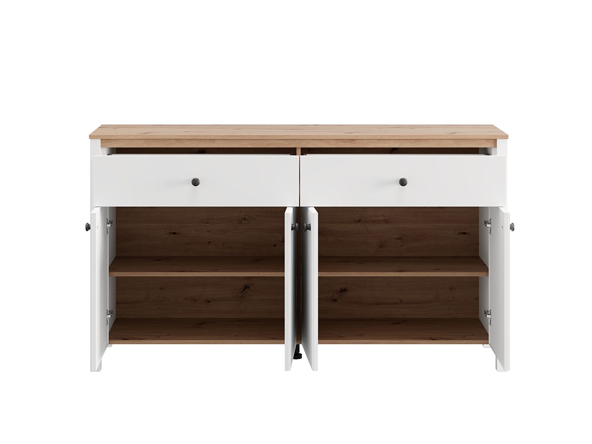 Le buffet BEDFORD allie élégance contemporaine et fonctionnalité. Conçu en MDF de haute qualité, il associe une finition blanc mat lumineuse à des détails en chêne artisan chaleureux, pour un rendu moderne et intemporel. Doté de 4 portes et de 2 tiroirs centraux, il offre un vaste espace de rangement pour organiser vaisselle, linge de maison ou objets du quotidien. Ses lignes épurées et ses poignées discrètes s’intègrent facilement dans un salon, une salle à manger ou un séjour. Solide et pratique, le buffet BEDFORD est la solution idéale pour un intérieur ordonné et stylé.