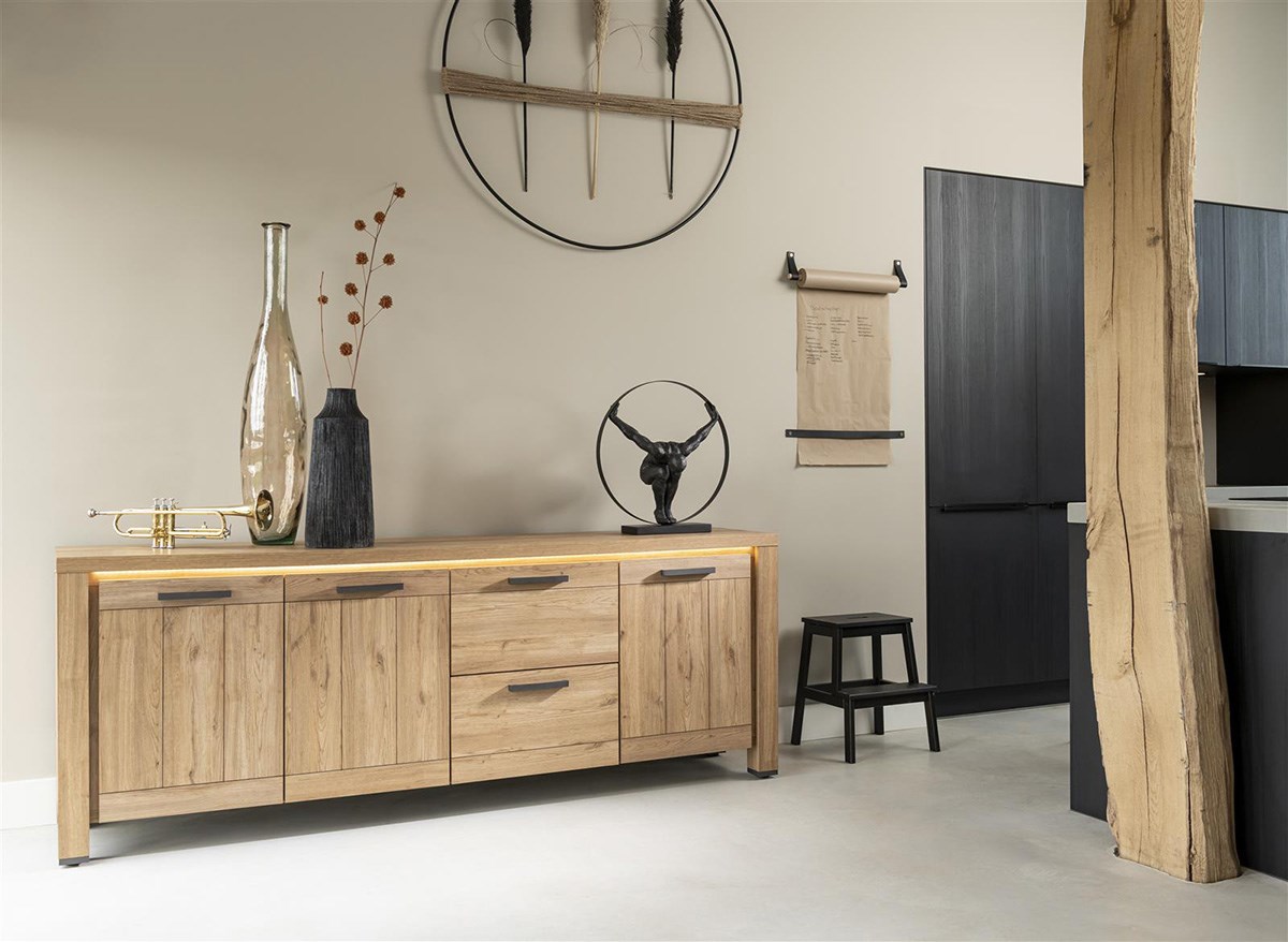 Équipé d’un éclairage LED avec variateur tactile, ce buffet vous permet de créer l’ambiance idéale dans votre pièce. Un meuble aussi pratique qu’esthétique, parfait pour sublimer votre intérieur.