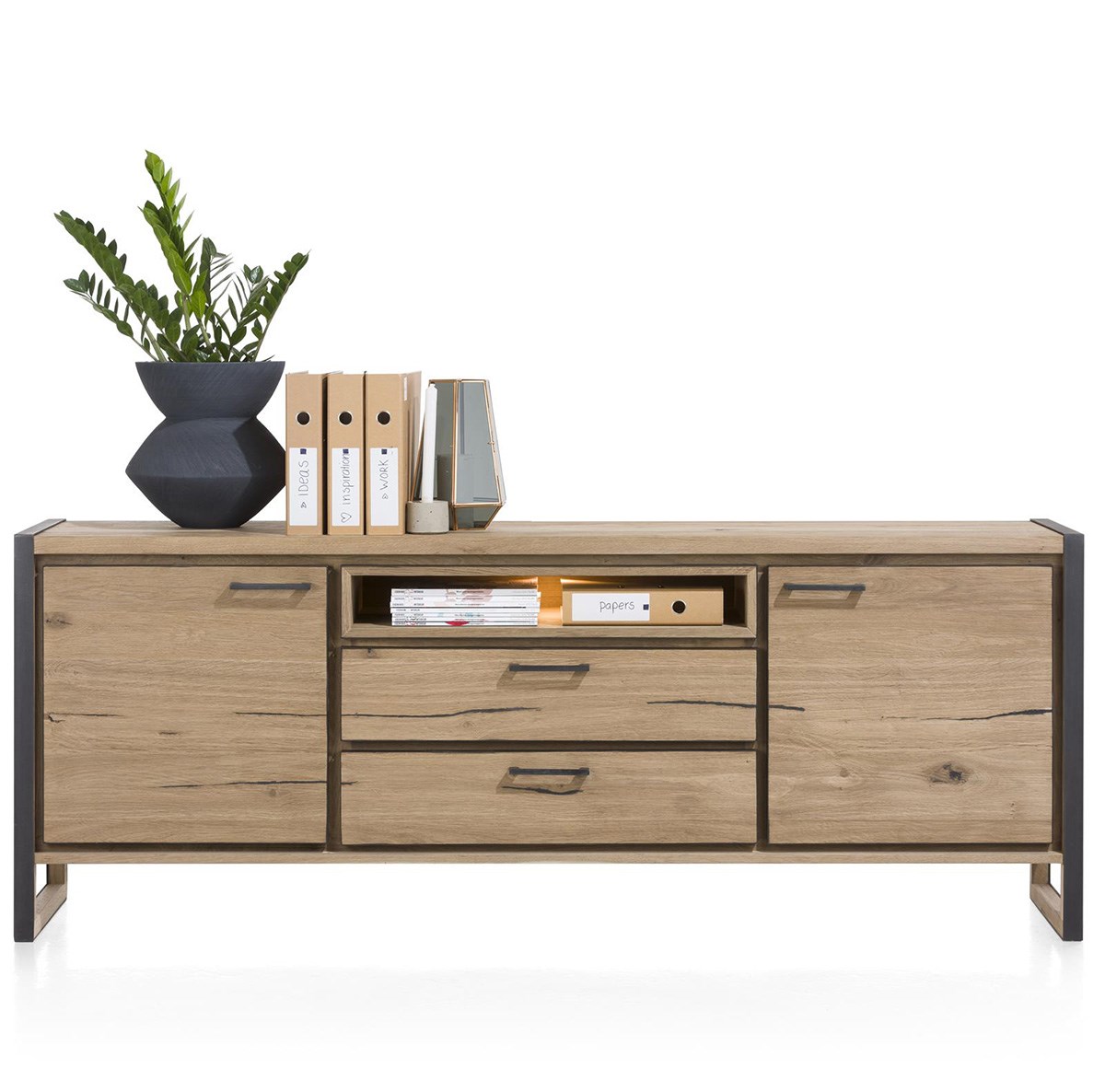 Le buffet de la collection METALO est en bois de chêne et métal. Son design industriel est très tendance ! Il s'intégrera aussi bien dans un intérieur esprit "Loft" que dans une belle maison de campagne. Le buffet METALO vous offre un bel espace de rangement avec ses 2 portes, 2 tiroirs et sa niche avec éclairage LED. Les portes et tiroirs sont équipés du système soft-close. Découvrez les autres meubles de la collection pour une harmonie parfaite dans votre intérieur !