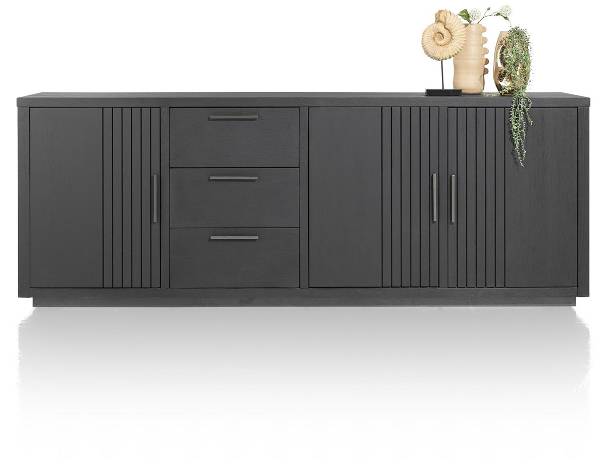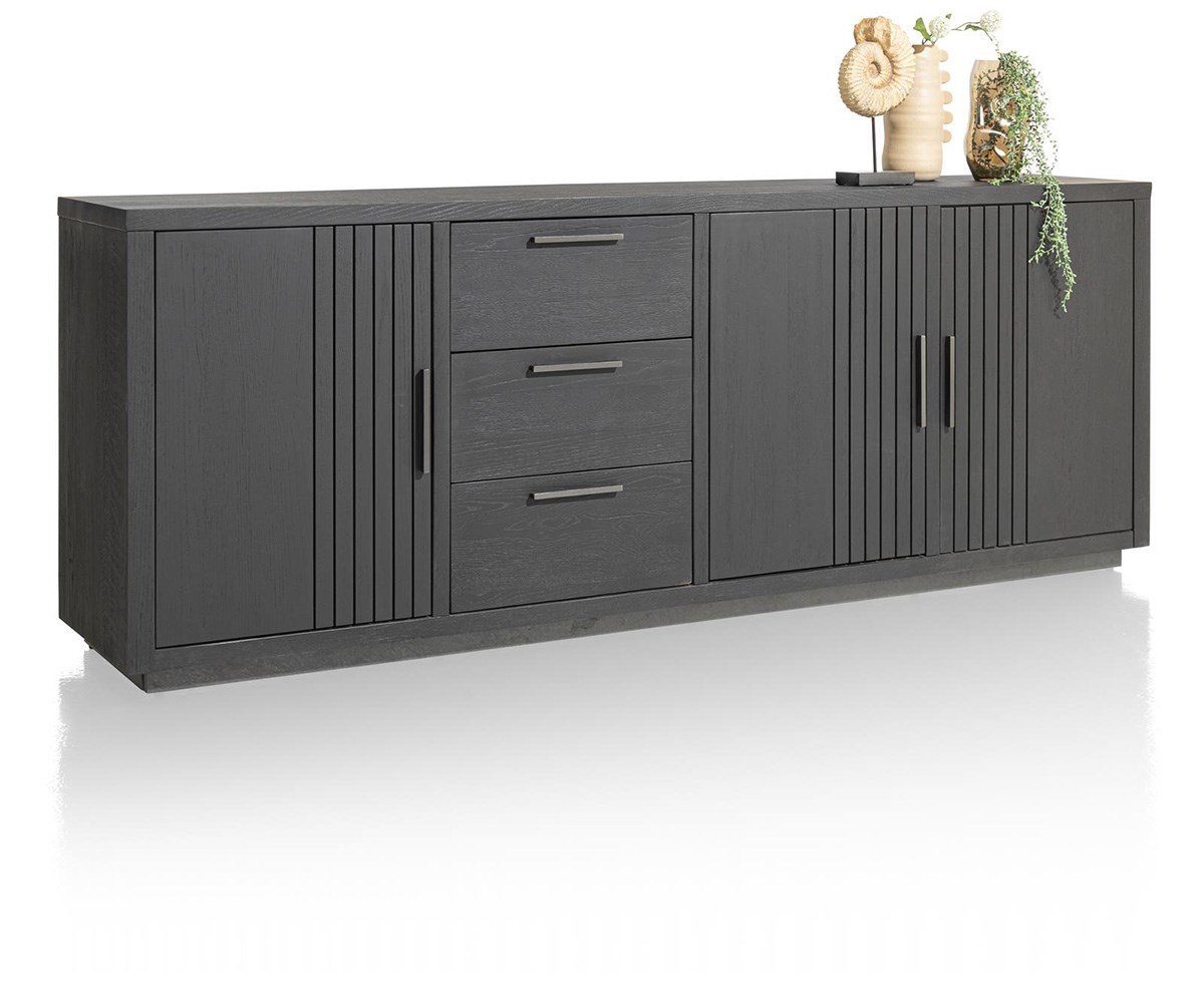 Avec sa structure en lamelles et son style rectiligne, cette collection évoque une subtile touche rétro tout en restant résolument moderne. Le buffet offre une grande capacité de rangement grâce à ses 3 portes et 3 tiroirs, parfaits pour organiser vaisselle, verres ou objets décoratifs.