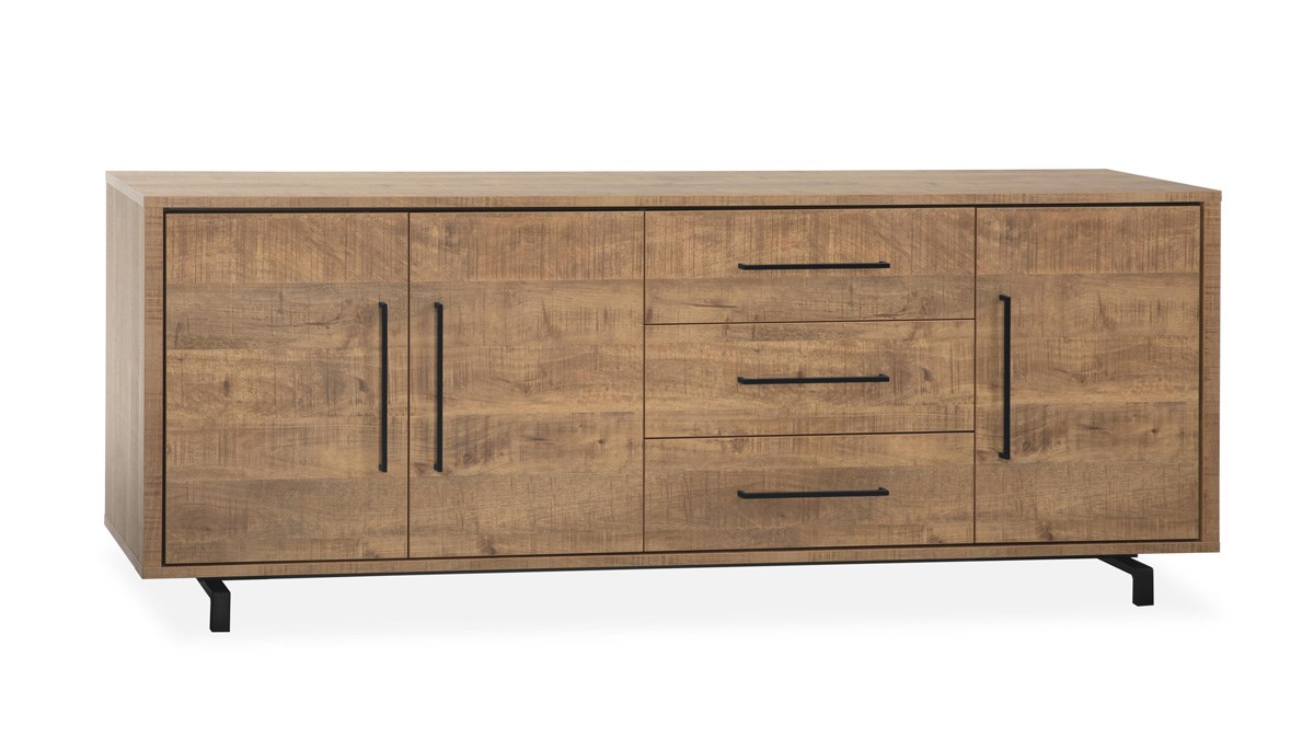 Le buffet WESTPORT incarne un style contemporain élégant et fonctionnel. Conçu en Lamulux coloris mango, il apporte une atmosphère chaleureuse et naturelle à votre intérieur. Avec sa largeur de 240 cm, il propose un espace de rangement généreux et bien organisé grâce à ses 3 portes et 3 tiroirs équipés d’amortisseurs, assurant une fermeture douce et silencieuse au quotidien. Les pieds en métal noir renforcent son allure moderne à l’esprit industriel tout en garantissant une excellente stabilité.