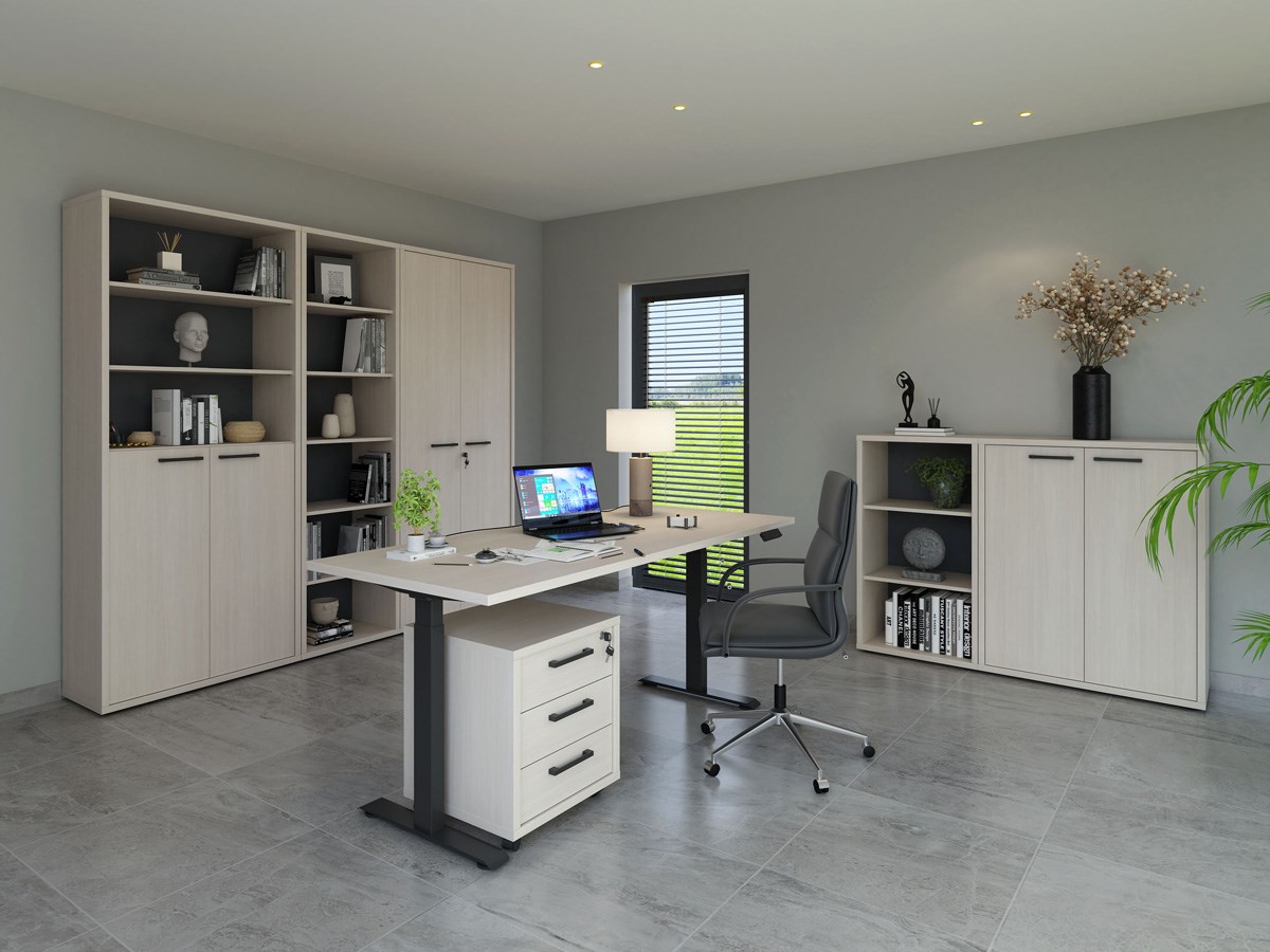 En plus du coloris chaleureux bois bolivar, le bureau FLEXO existe également en chêne sable, une teinte bois élégante qui convient à tous les styles d’intérieur.
