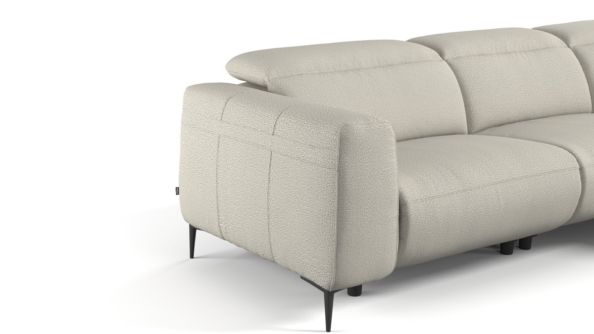 Découvrez le luxe et le confort avec le canapé d’angle MAXIME, une pièce élégante qui attire tous les regards dans votre salon. Ce modèle moderne est équipé d’un chaise longue arrondie à droite et d’un relax électrique à gauche, parfaits pour vos moments de détente. Les pieds fins en métal noir apportent une touche contemporaine et assurent une excellente stabilité. Revêtu d’un tissu de qualité, MAXIME offre une sensation douce et une durabilité remarquable. Grâce à la fonction relax électrique et ses têtières relevabels; vous profitez d’un confort sur mesure. Ce canapé est disponible en plusieurs coloris et compositions, pour s’adapter parfaitement à votre style d’intérieur.