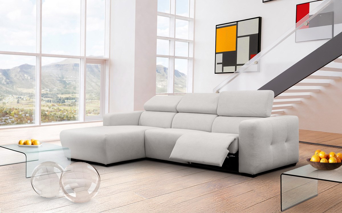Le canapé d’angle DESIR de Henders & Hazel allie design contemporain et confort exceptionnel. Revêtu d’un tissu de qualité, ce modèle est équipé d’une fonction relax électrique et de têtières relevables, vous permettant d’adopter la position idéale pour vous détendre en toute simplicité.