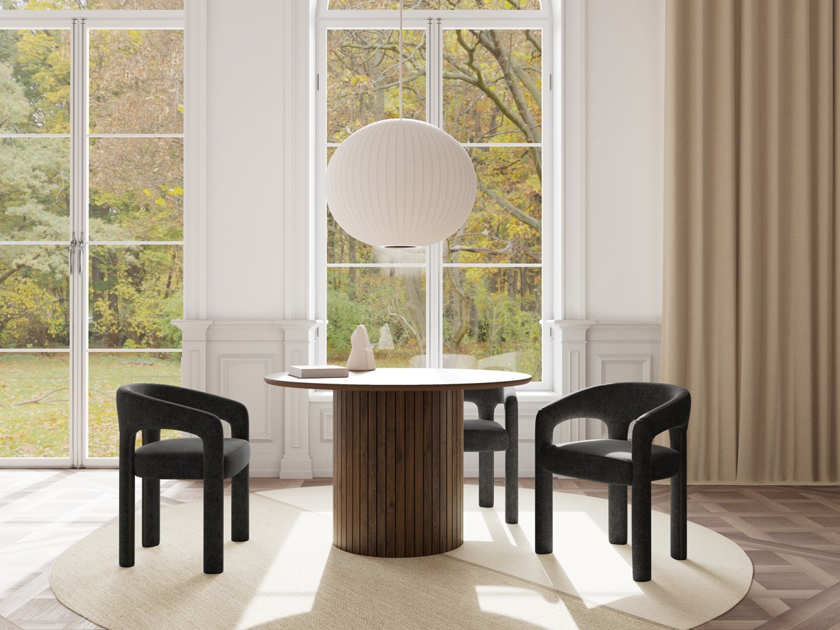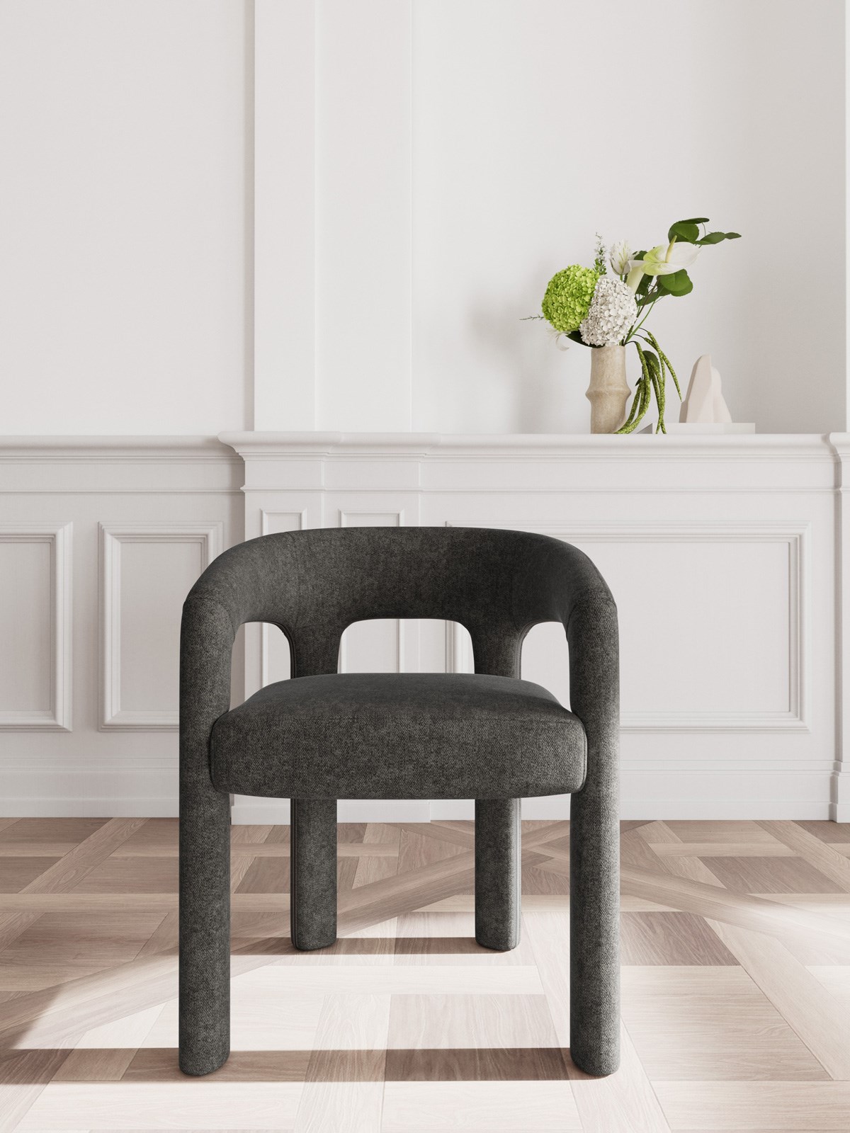 Découvrez la chaise à accoudoirs COLE, une alliance parfaite de style contemporain et de confort exceptionnel. Habillée d’un tissu Apia gris foncé 458 à base de chenille, elle séduit par sa texture douce et élégante. Son assise, équipée de ressorts ensachés, offre un soutien optimal et un accueil moelleux, idéal pour profiter pleinement de vos repas. Dotée de accoudoirs ergonomiques, cette chaise garantit un confort durable tout en apportant une touche sophistiquée à votre salle à manger. Facile à intégrer, elle s’harmonise parfaitement avec toutes les tables et styles d’intérieur.