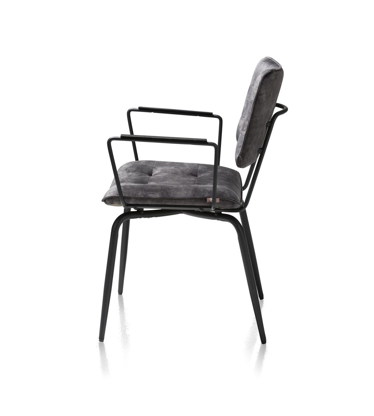 Le coloris anthracite apporte chaleur et caractère à votre intérieur, et la chaise est également disponible dans d’autres couleurs. Pour un style plus léger, une version sans accoudoirs est également proposée.