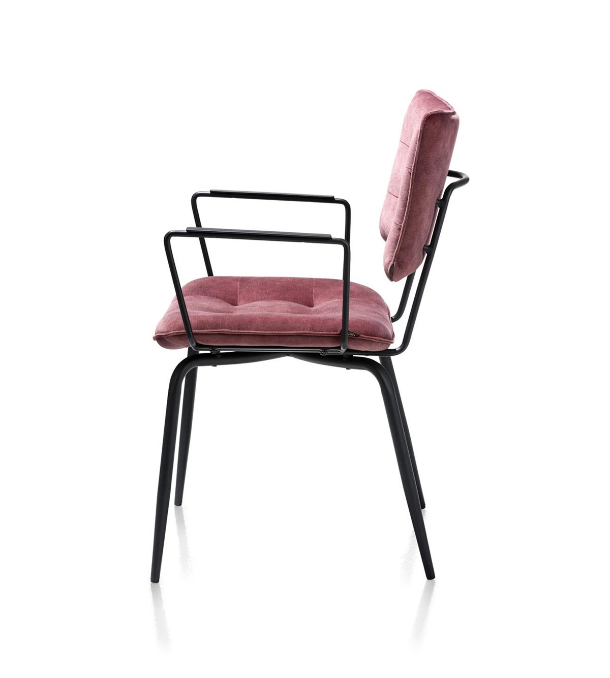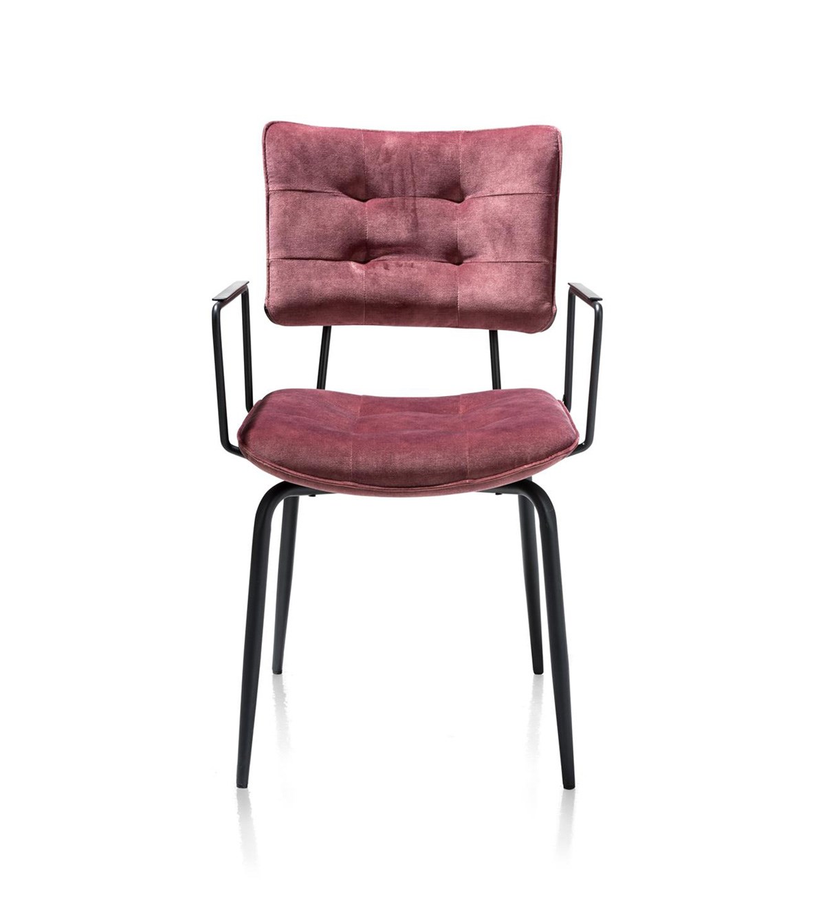 Le coloris burgundy rouge apporte chaleur et caractère à votre intérieur, et la chaise est également disponible dans d’autres couleurs. Pour un style plus léger, une version sans accoudoirs est également proposée.
