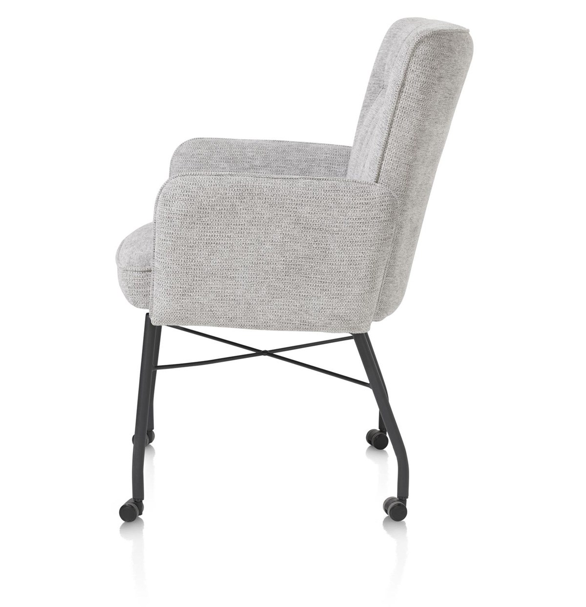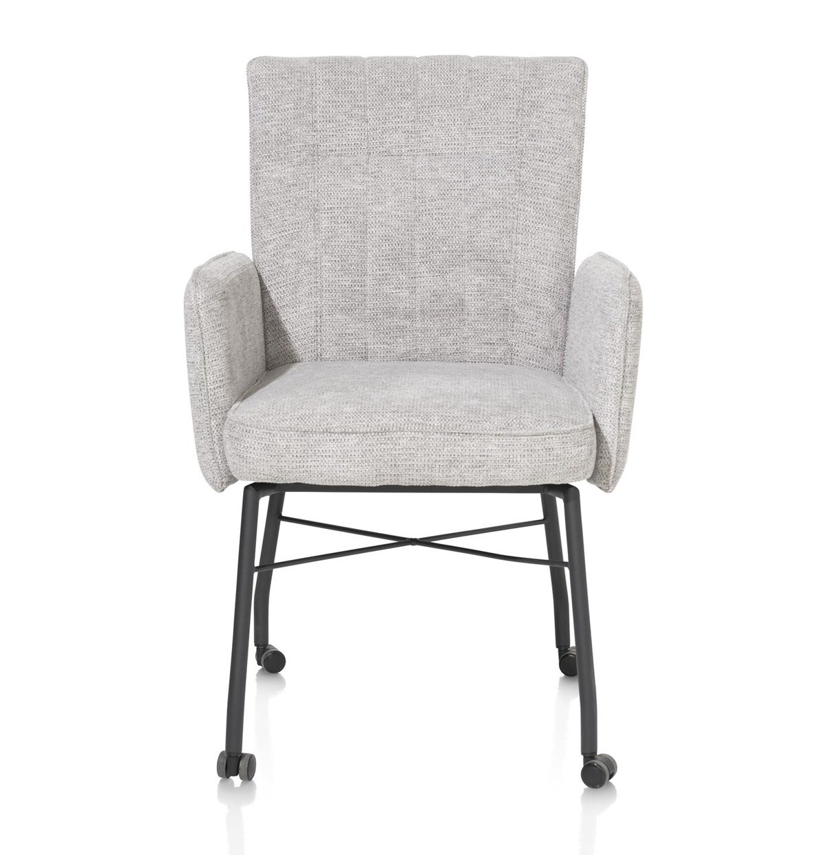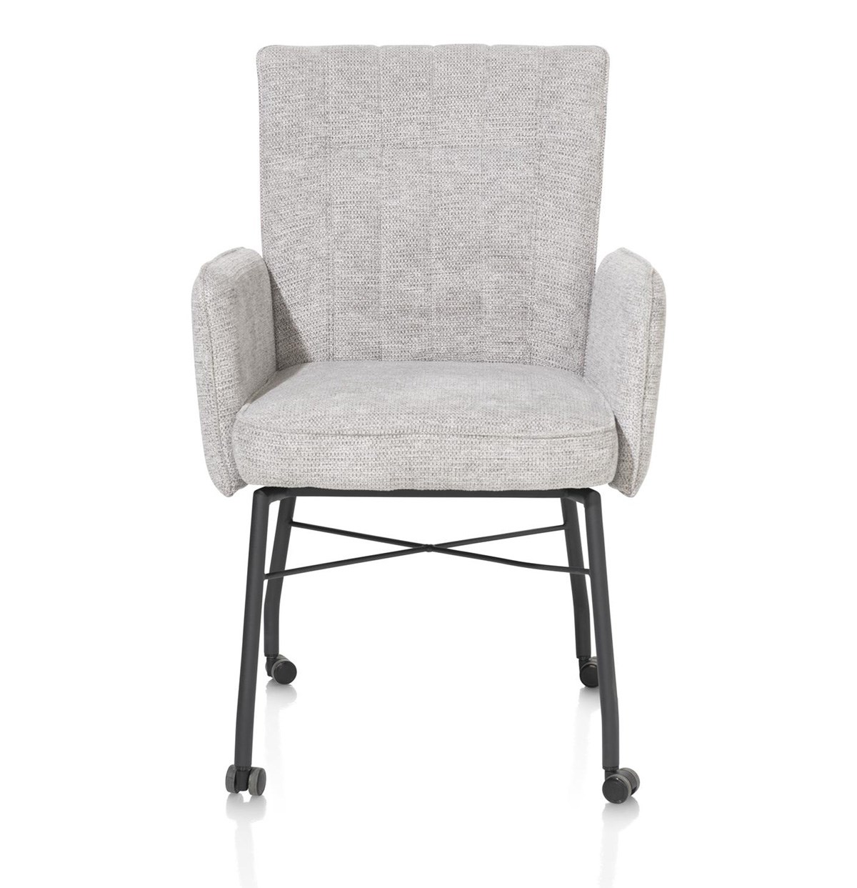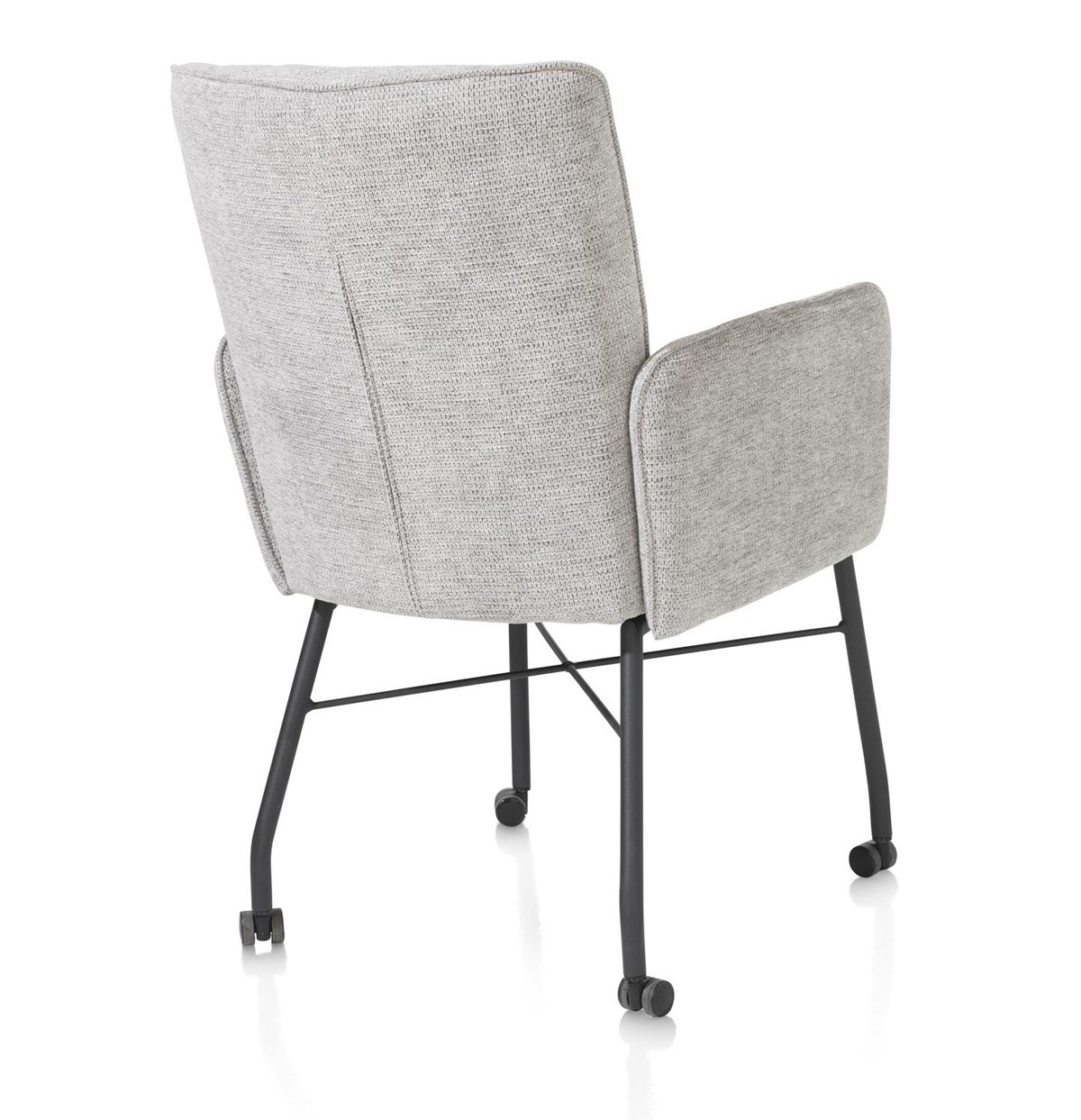 Le piètement et la structure en métal noir apportent une touche moderne à l’Olvi. Grâce aux roulettes, le fauteuil se déplace facilement sans compromettre la stabilité ni le confort.