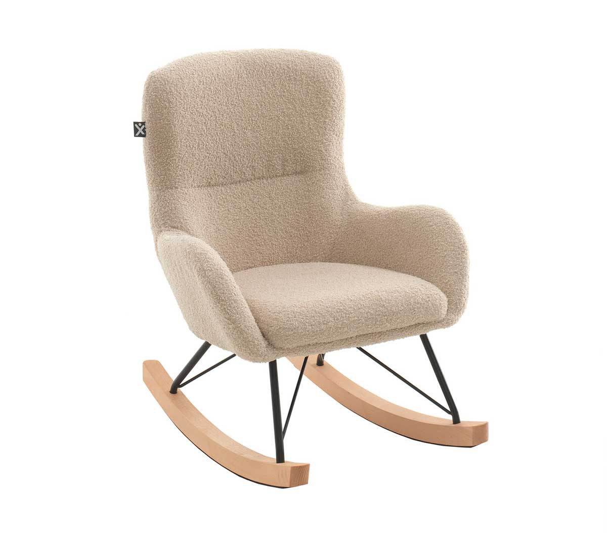 Apportez douceur et style à la chambre d’enfant, au coin lecture ou à votre salon avec le fauteuil à bascule ROCKY Mini, signé par la marque renommée JAXX Furniture (Vipack). Cette charmante chaise à bascule en tissu bouclé beige allie confort, design tendance et qualité durable. Son look moderne, ses formes arrondies et sa texture chaleureuse en font un véritable atout déco.