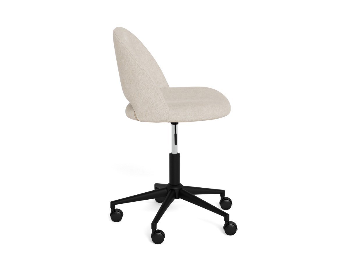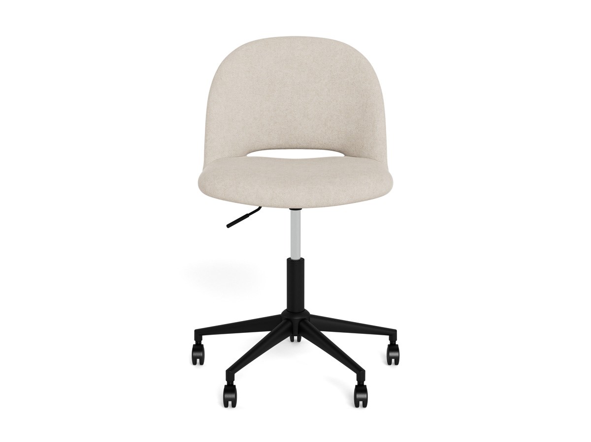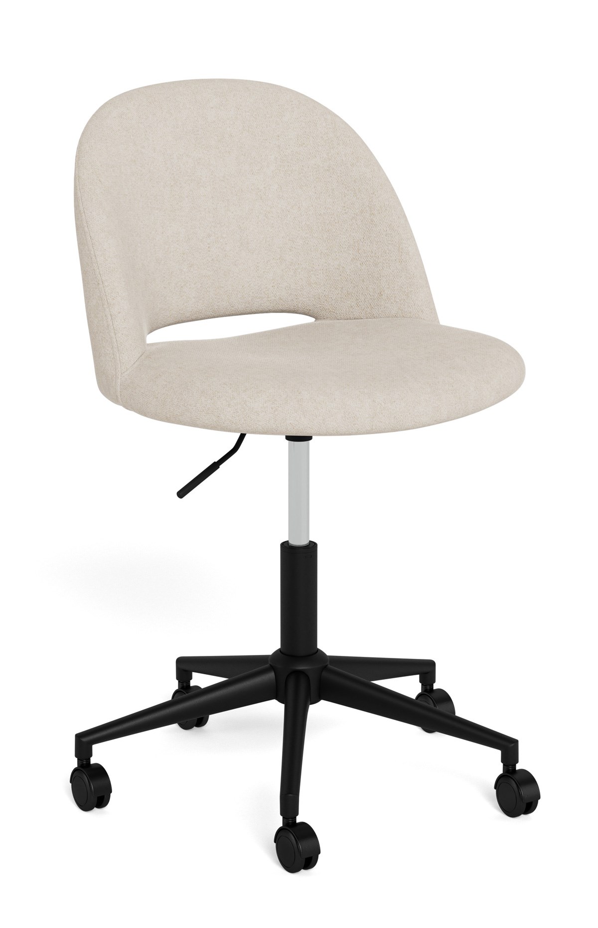 La chaise de bureau ALLAN allie élégance contemporaine et fonctionnalité pour s’intégrer harmonieusement à tous les espaces de travail. Son assise arrondie est habillée du tissu Apia beige 453, doux au toucher et chaleureux. Réglable en hauteur grâce à un vérin à gaz, elle s’adapte facilement à vos besoins quotidiens. Son piètement pivotant à 5 branches en acier laqué noir mat assure stabilité et robustesse, tandis que les roulettes à frein souple garantissent une mobilité fluide et sécurisée. Confortable et pratique, elle accompagne vos journées avec style.