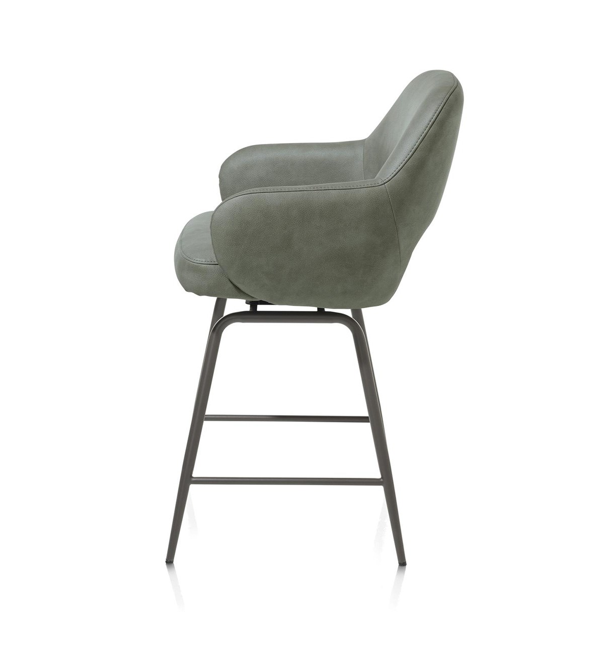 Le tabouret NIKOLAS est revêtu du tissu microfibre Pala, réputé pour sa durabilité et son entretien facile. Ce modèle est disponible en quatre coloris élégants, dont cette superbe version verte, idéale pour une décoration moderne ou industrielle.