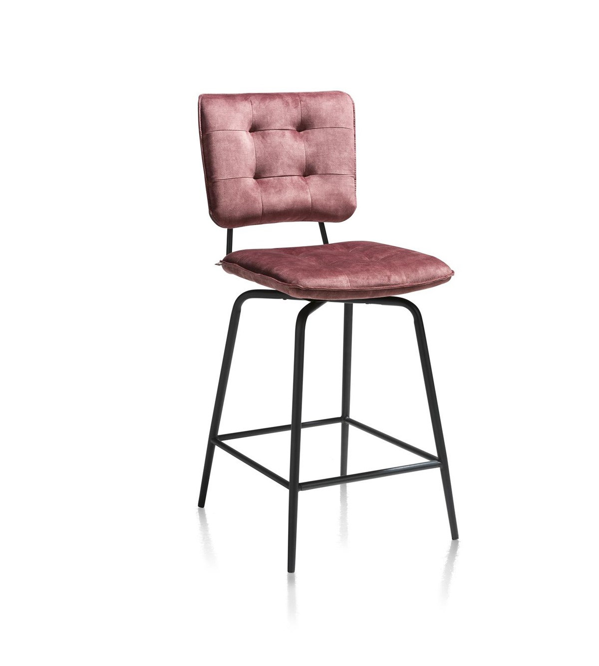 La structure en métal off black apporte une touche moderne et élégante, tandis que le dossier et l’assise capitonnés pivotante confèrent au tabouret un aspect luxueux et accueillant. Le revêtement est en microfibre Karese de haute qualité, de couleur burgundy rouge, doux et chaud comme du velours, tout en résistant à un usage intensif.