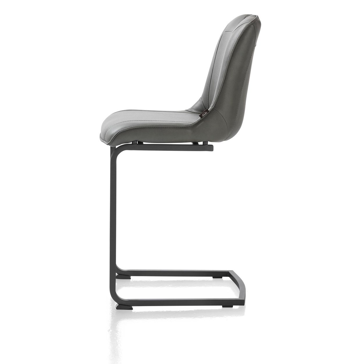 Le piètement swing carré en métal noir confère à la chaise un look moderne et solide tout en assurant confort et stabilité. Un détail pratique et esthétique est la poignée intégrée dans le dossier, qui permet de déplacer facilement la chaise sans compromettre le design.