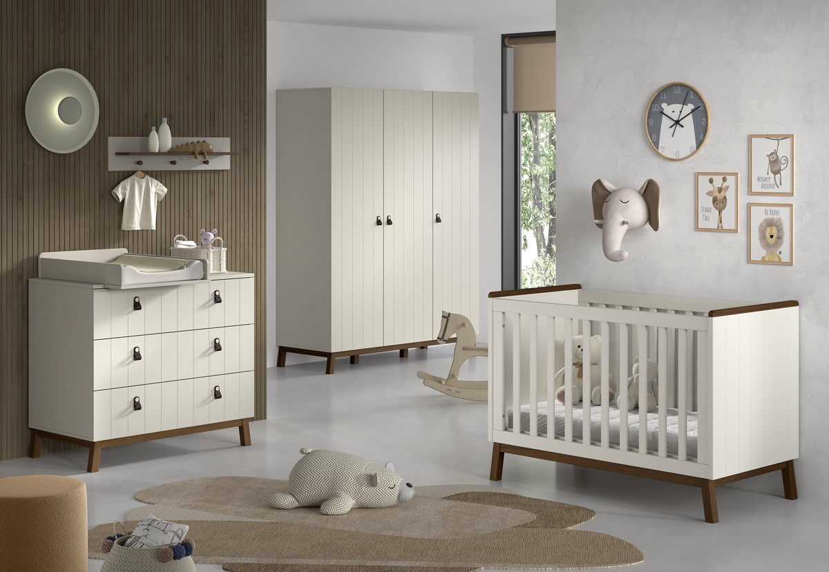 Les accents chaleureux en noyer, associés à la douce teinte argile, confèrent à la chambre SEZANE une atmosphère apaisante et moderne. Les couleurs neutres s’intègrent facilement dans tous les styles d’intérieur et créent un espace où votre bébé se sent en sécurité et bien entouré.