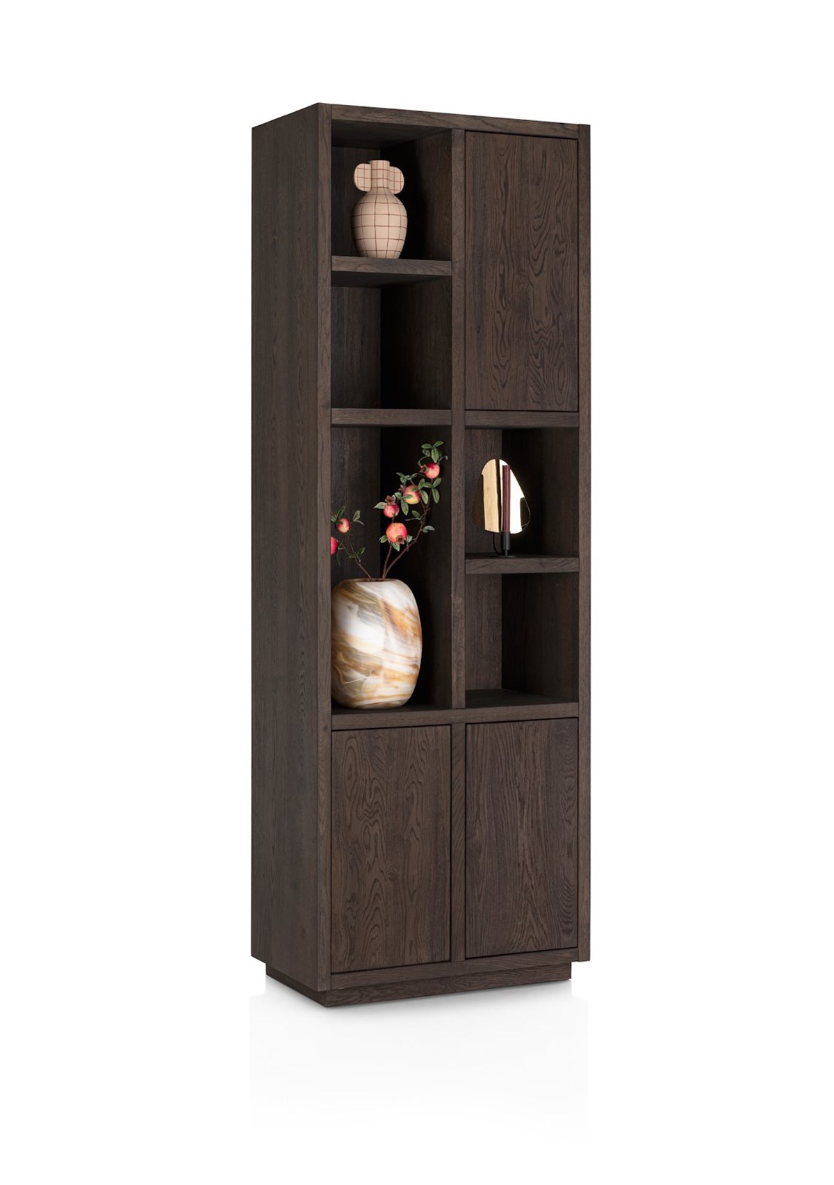 Cette combinaison harmonieuse d’espaces ouverts et fermés rend la colonne parfaite non seulement comme meuble bar, mais aussi comme meuble de rangement ou de décoration.