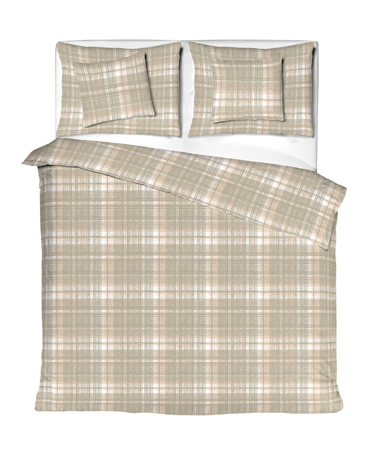 Apportez chaleur et élégance à votre chambre avec la housse de couette SHETLAND 240x220 cm, accompagnée de deux taies d’oreiller assorties de 65x65 cm. Confectionnée en flanelle 100 % coton, elle offre une douceur exceptionnelle et un toucher laineux grâce à son tissage gratté des deux côtés. Idéale pour les nuits d’hiver, cette parure crée une atmosphère cosy et réconfortante. Son coloris greige, subtilement décliné en tons beige, corail et gris, s’intègre harmonieusement à tous les styles d’intérieur. Facile à changer, la housse de couette permet de transformer votre chambre en un instant. Linge de lit fabriqué en Europe, alliant confort, qualité et durabilité.