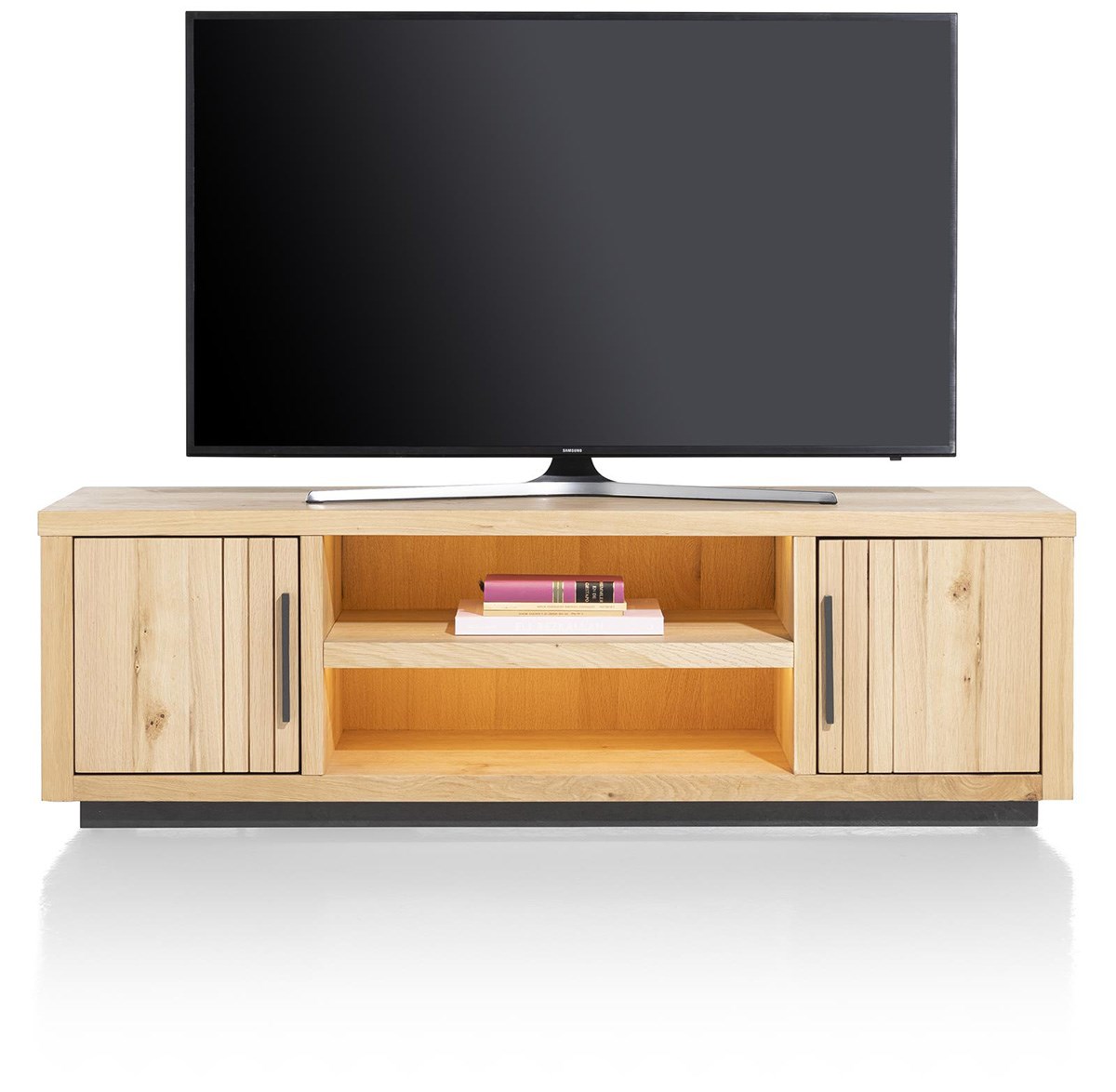 Sa structure en lamelles confère à la collection une allure rétro pleine de charme, tout en s’inscrivant dans un style contemporain et rectiligne. Avec ses 2 portes à fermeture douce (soft-closing) et ses 2 niches ouvertes, ce meuble TV de 160 cm offre un espace de rangement pratique et fonctionnel pour vos appareils multimédia et accessoires.