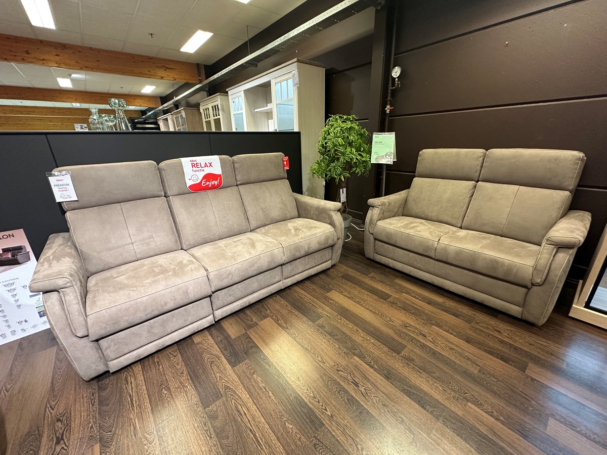 Salon 3 places avec 2 relax élec et 2 places fixes en tissu Cracus Elephant