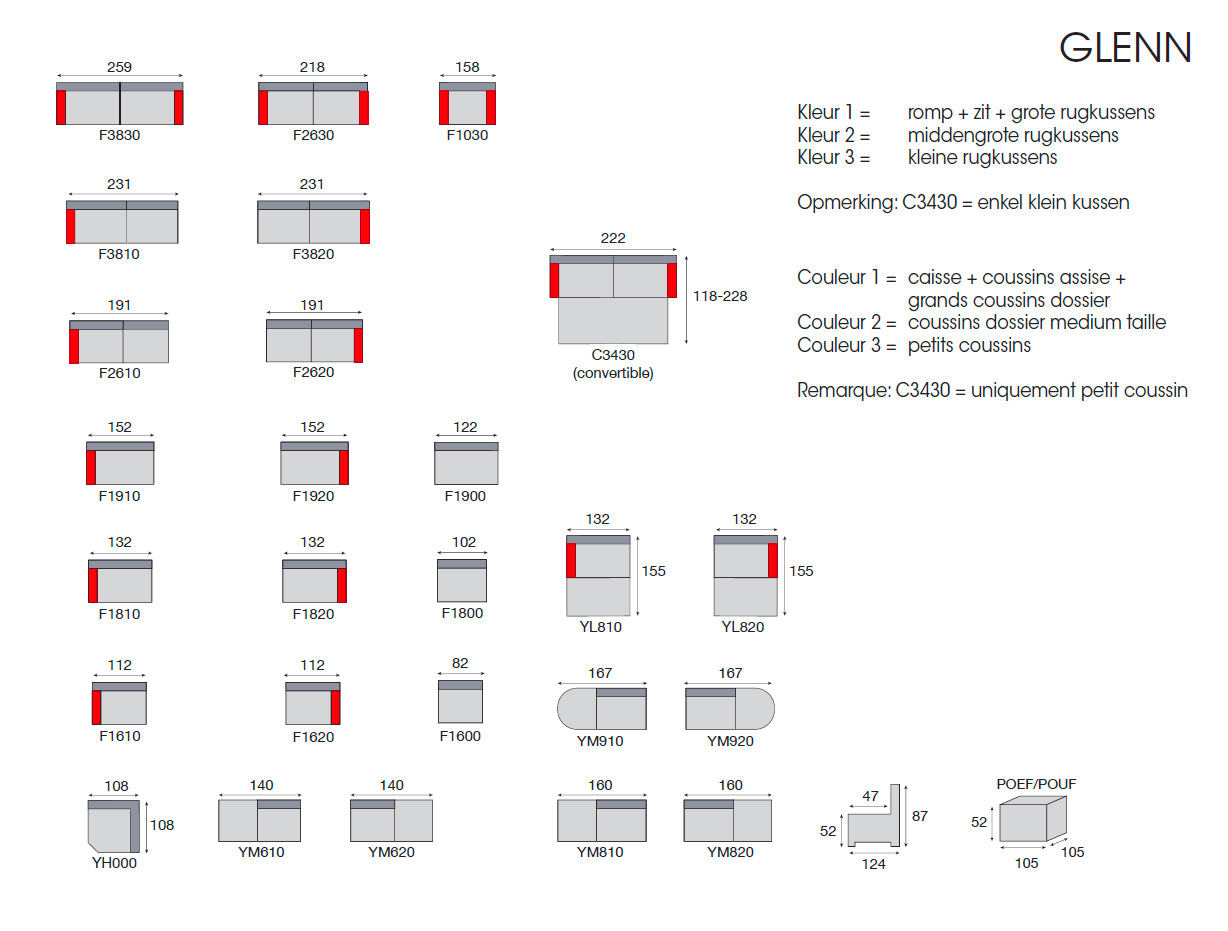 Avec la collection GLENN, vous optez pour confort élégant, polyvalence et fonctionnalité pratique en un seul meuble. Faites de votre salon un espace où il fait bon se détendre et dormir confortablement.