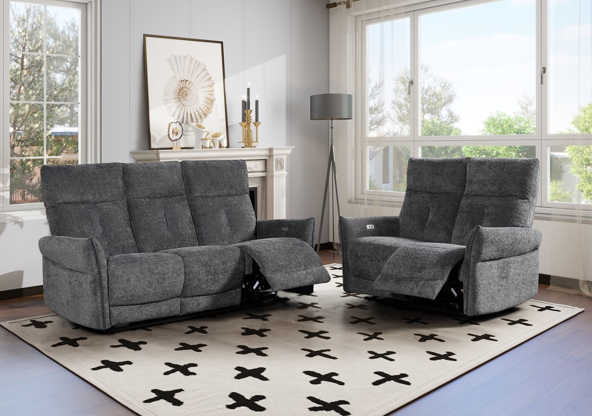 Le salon KAREL allie confort et élégance avec son tissu Maka Grey 38, d'une teinte argentée, et ses détails en cuir Massivo Dark Grey 8020, apportant une touche sophistiquée. Il comprend un canapé 3 places et un canapé 2 places, chacun équipé de 2 relax électriques, offrant une relaxation optimale à chaque utilisateur. Le design moderne et épuré de ce salon s'intègre parfaitement dans des intérieurs contemporains, combinant luxe, confort et fonctionnalité pour un moment de détente inégalé.