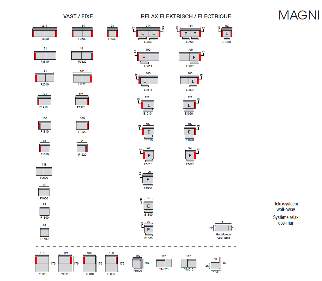Le salon MAGNI est disponible en plusieurs couleurs, revêtements et compositions, afin que vous puissiez toujours trouver la version qui correspond parfaitement à votre salon. Pour un confort d’assise, vous avez la fonction relax électrique qui vous permet de régler votre position assise idéale en toute simplicité.