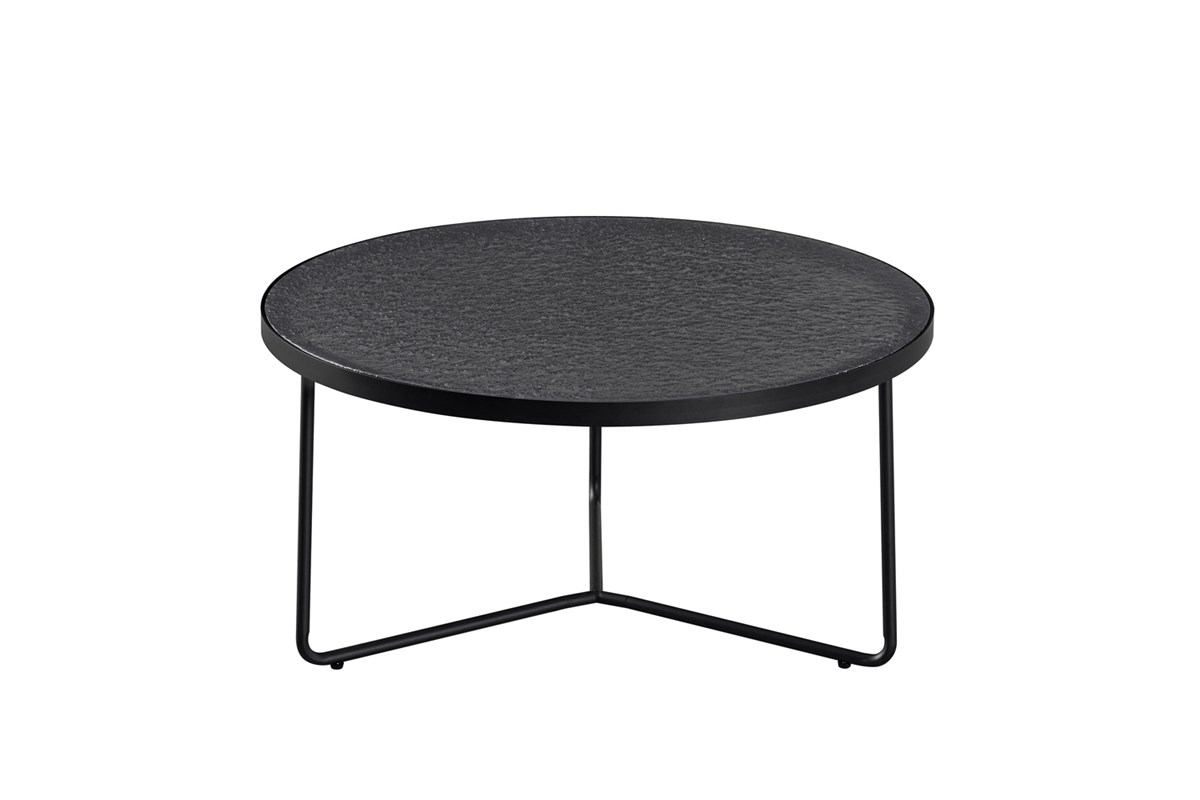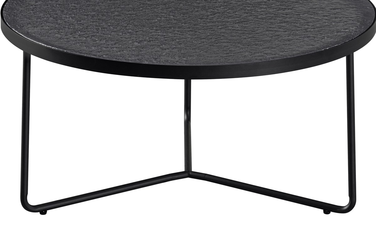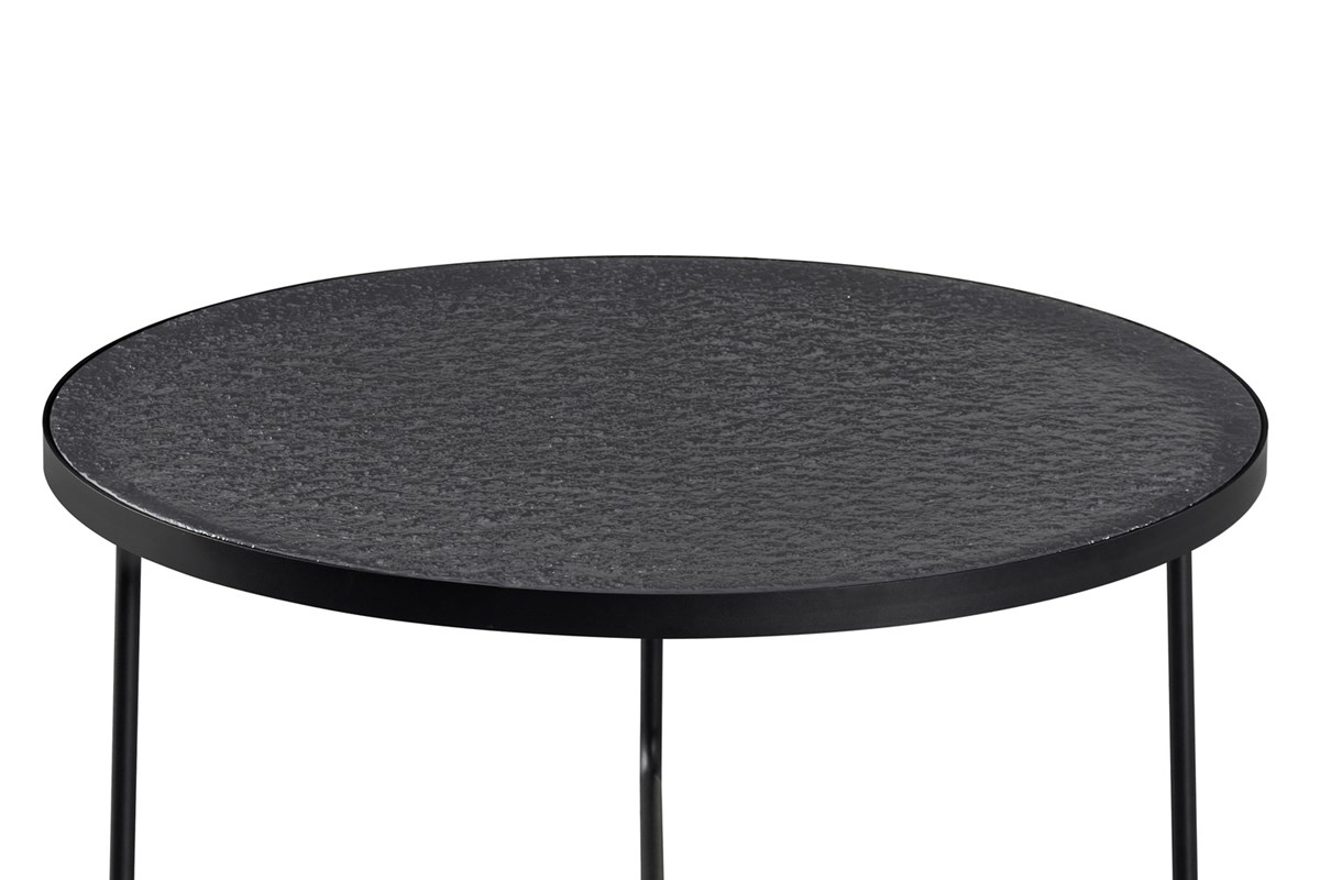 Les plateaux sont réalisés en verre trempé de 3 mm, avec une structure gravée sur la surface supérieure, offrant une finition subtile et raffinée. Les pieds en métal noir avec revêtement par poudre assurent robustesse et durabilité, tout en apportant un style contemporain à votre intérieur.