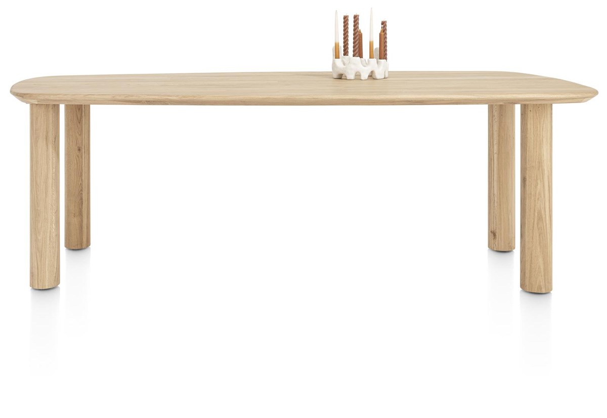 Les tables à manger AZULO attirent immédiatement l’attention grâce à leur plateau en chêne massif à la forme unique de galet (pebblestone). Ce design organique apporte à votre salle à manger une atmosphère élégante et naturelle.