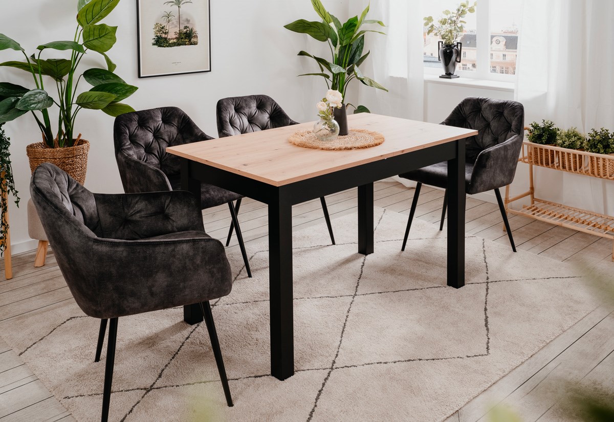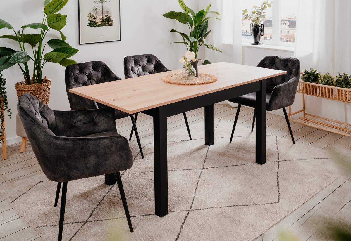 La table extensible fait partie de la collection COBURG. Cette table est à la fois belle et pratique, elle permet de recevoir de 6 à 8 personnes grâce à sa rallonge de 40 cm. La table est réalisée en décor imitation chêne artisan.