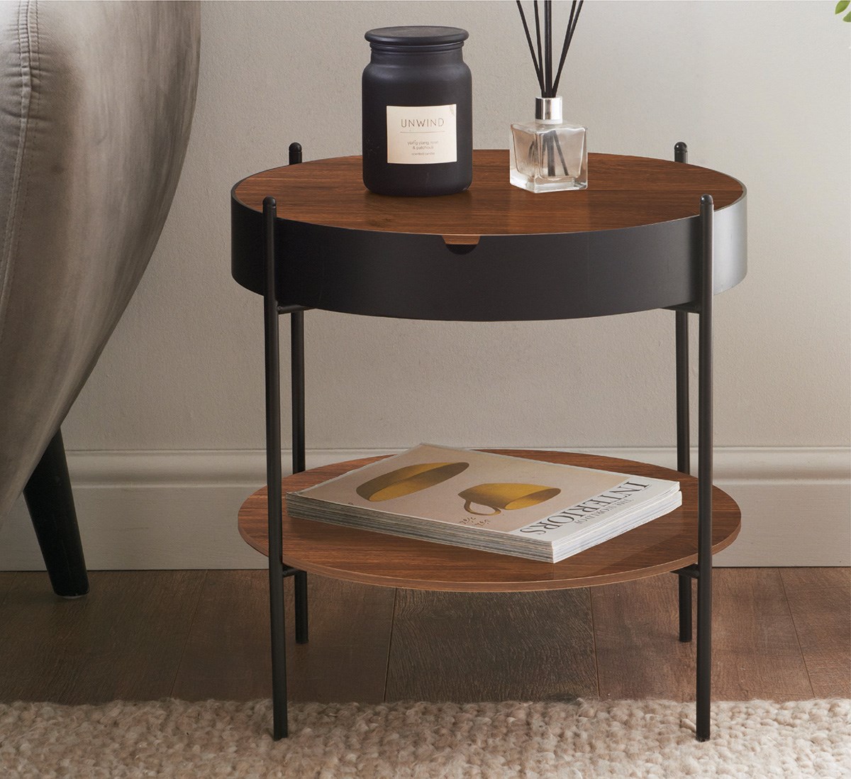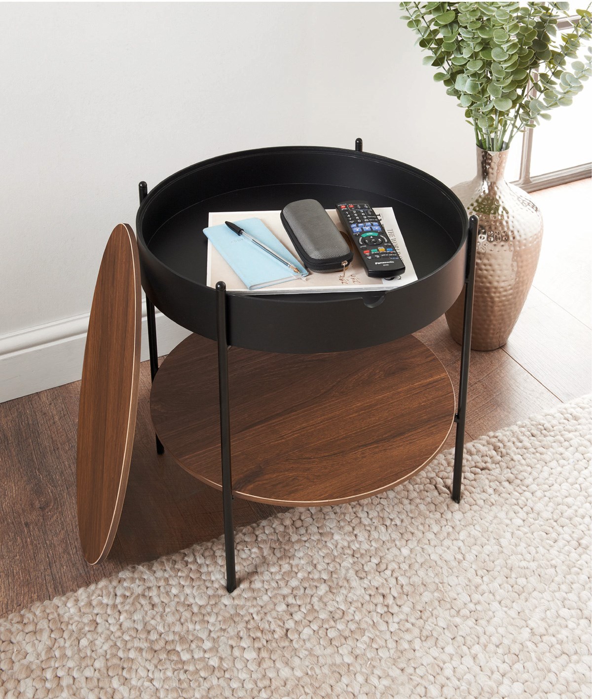 La table d’appoint TRELLEBORG 88B allie praticité et design moderne. Sa forme ronde et son double plateau en font un meuble fonctionnel et élégant. Le plateau supérieur est équipé d’un plateau amovible en décor noisetier, parfait pour servir ou accéder facilement à vos objets. Le plateau inférieur offre un espace de rangement discret pour vos livres, magazines, télécommandes ou petits objets du quotidien. Compacte et polyvalente, la TRELLEBORG 88B s’intègre harmonieusement dans un salon, un coin lecture ou une chambre, apportant une touche chaleureuse et naturelle à votre intérieur.
