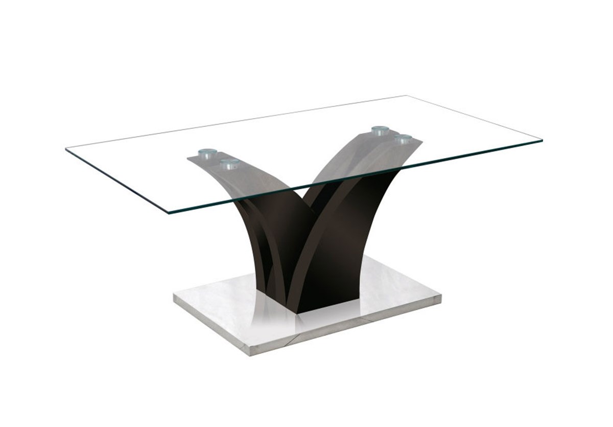 Table de salon rectangulaire CORINA avec plateau en verre et pied central stylé.Spécifications de l’article