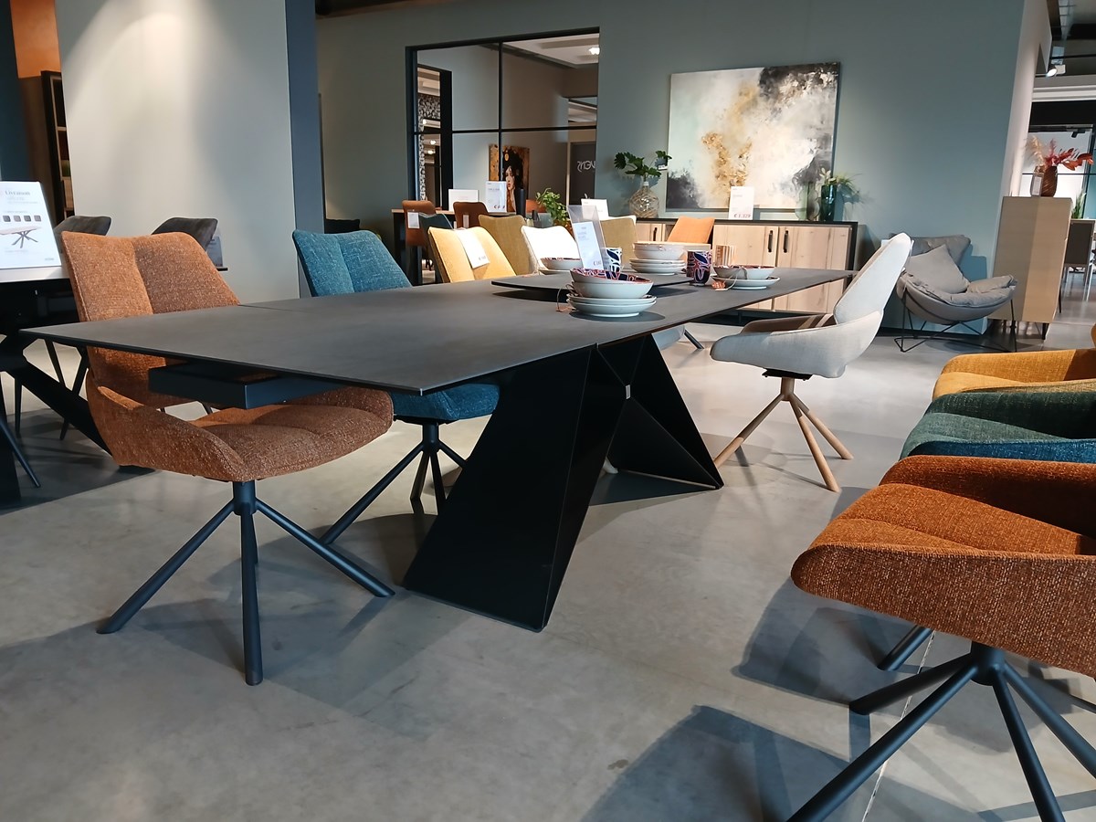 TABLE 'EDUARD F' RECTANGULAIRE AVEC 2 ALLONGES 180/280X95CM CERAMIQUE ANTRACITE