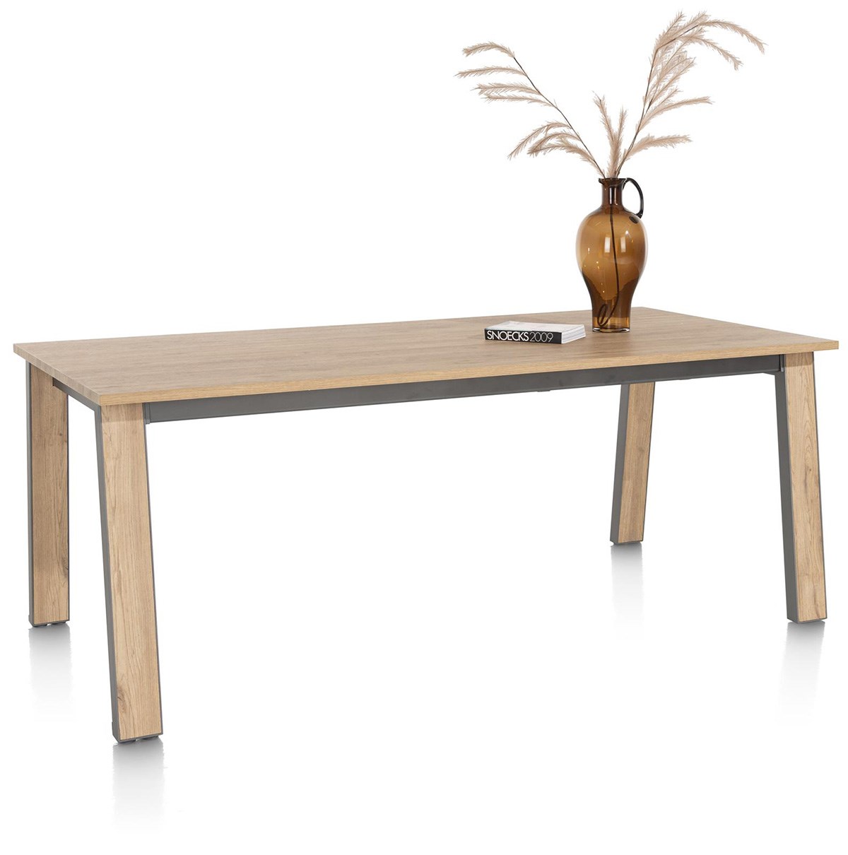Son plateau en Primo Laminato (HPL) coloris chêne offre une imitation bois réaliste, tout en étant résistant et facile d’entretien. Les pieds en métal sont subtilement rehaussés d’une incrustation HPL assortie au plateau, pour une finition élégante et harmonieuse.