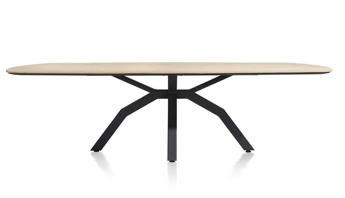 La table à manger LIVADA 250x108 cm séduit par son plateau ovale en placage chêne coloris natural, qui met à l’honneur les formes organiques très tendance dans nos intérieurs. Son piétement central en métal noir, en forme de pattes d’araignée, lui confère un style moderne et élégant, tout en assurant une parfaite stabilité.