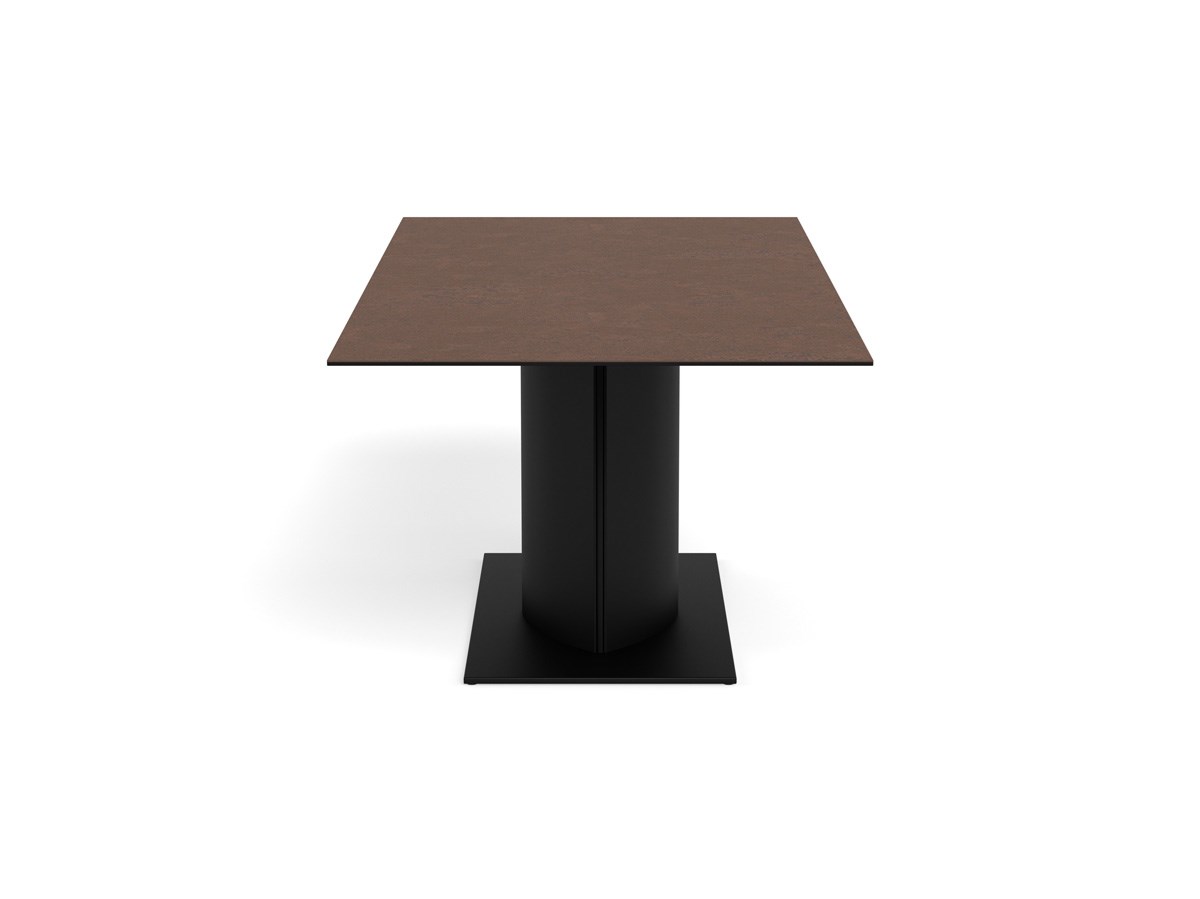 Affirmez le style de votre salle à manger avec la table MARBELLA, une pièce au design contemporain qui met à l’honneur la géométrie et la pureté des lignes. Son plateau rectangulaire fin en céramique brun rouille séduit par son aspect minéral et élégant, tout en étant parfaitement adapté à un usage quotidien grâce à sa résistance aux rayures et sa facilité d’entretien.