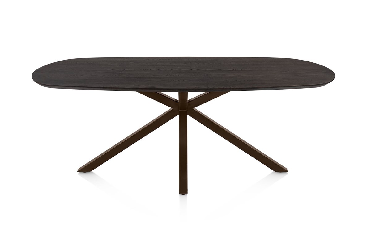 Découvrez la table ovale CALETTA 210 × 100 cm, une pièce élégante qui apporte chaleur et raffinement à tout intérieur. Avec son plateau en placage chêne couleur basalt et son pied X métallique steel brown, cette table combine design contemporain et fonctionnalité. Sa forme ovale crée une atmosphère conviviale, parfaite pour les moments de partage en famille ou entre amis.