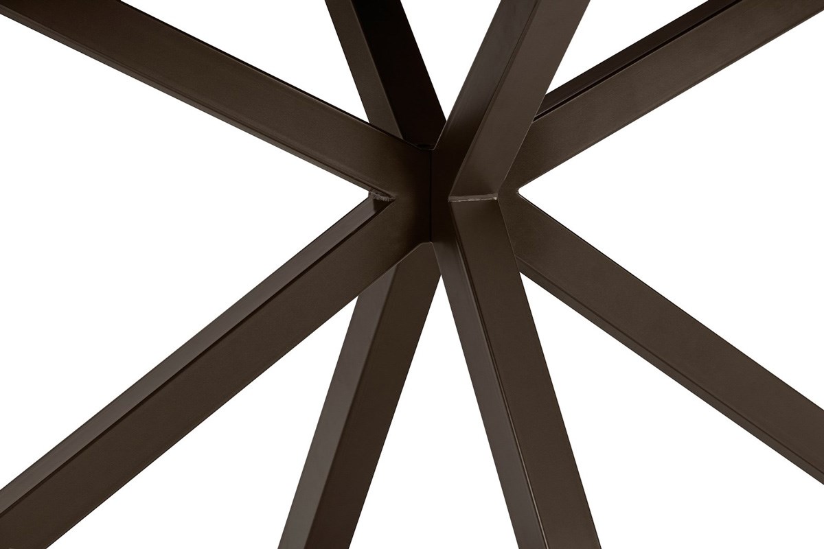 Le plateau en placage chêne basalt offre le charme naturel du bois tout en garantissant une grande facilité d’entretien. Le pied X (pied en étoile) en métal steel brown ajoutent une touche moderne et assurent une excellente stabilité. Cette harmonie de matériaux fait de la CALETTA un choix idéal pour les intérieurs modernes et scandinaves.