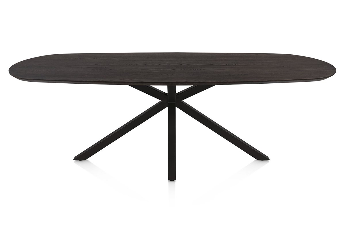 Découvrez la table ovale CALETTA 240 × 105 cm, une pièce élégante qui apporte chaleur et raffinement à tout intérieur. Avec son plateau en placage chêne couleur basalt et son pied X métallique noir, cette table combine design contemporain et fonctionnalité. Sa forme ovale crée une atmosphère conviviale, parfaite pour les moments de partage en famille ou entre amis.