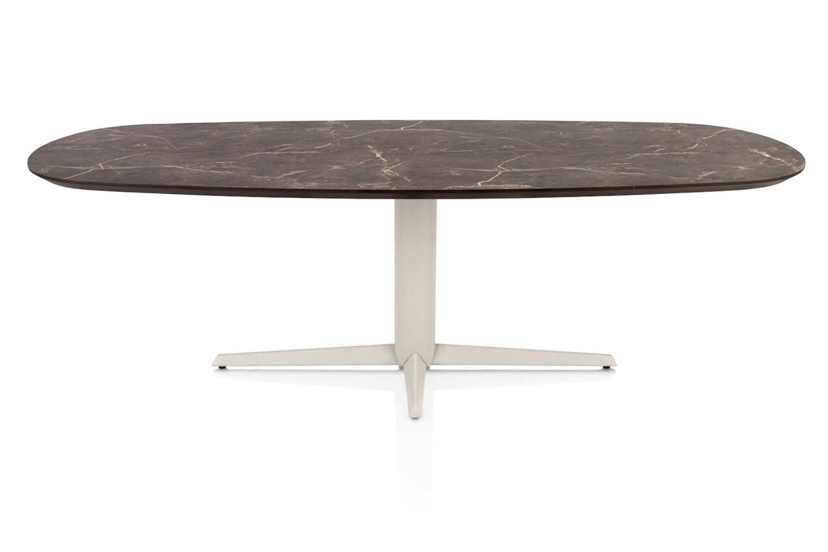 Table ovale Caletta - marble brown - pied central crème - 240x105cm