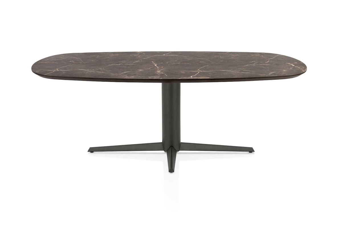 Table ovale Caletta - marble brown - pied central graphite - 210x100cm